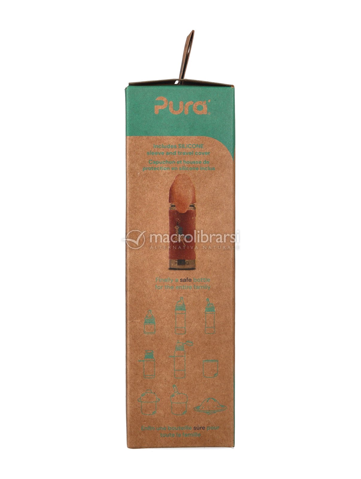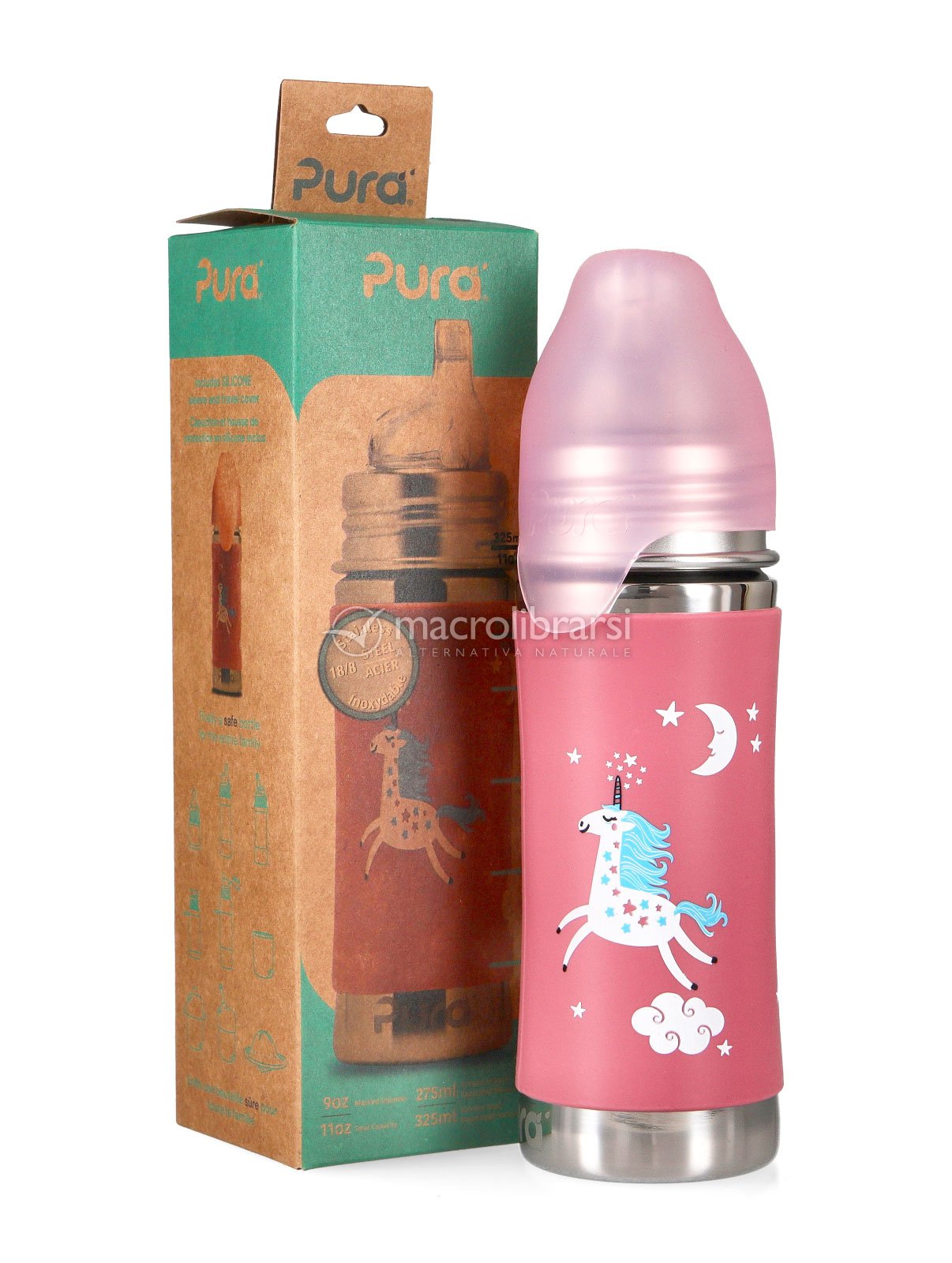 | Confezione | Bottiglia da 325 ml + beccuccio in silicone + tappo da viaggio |