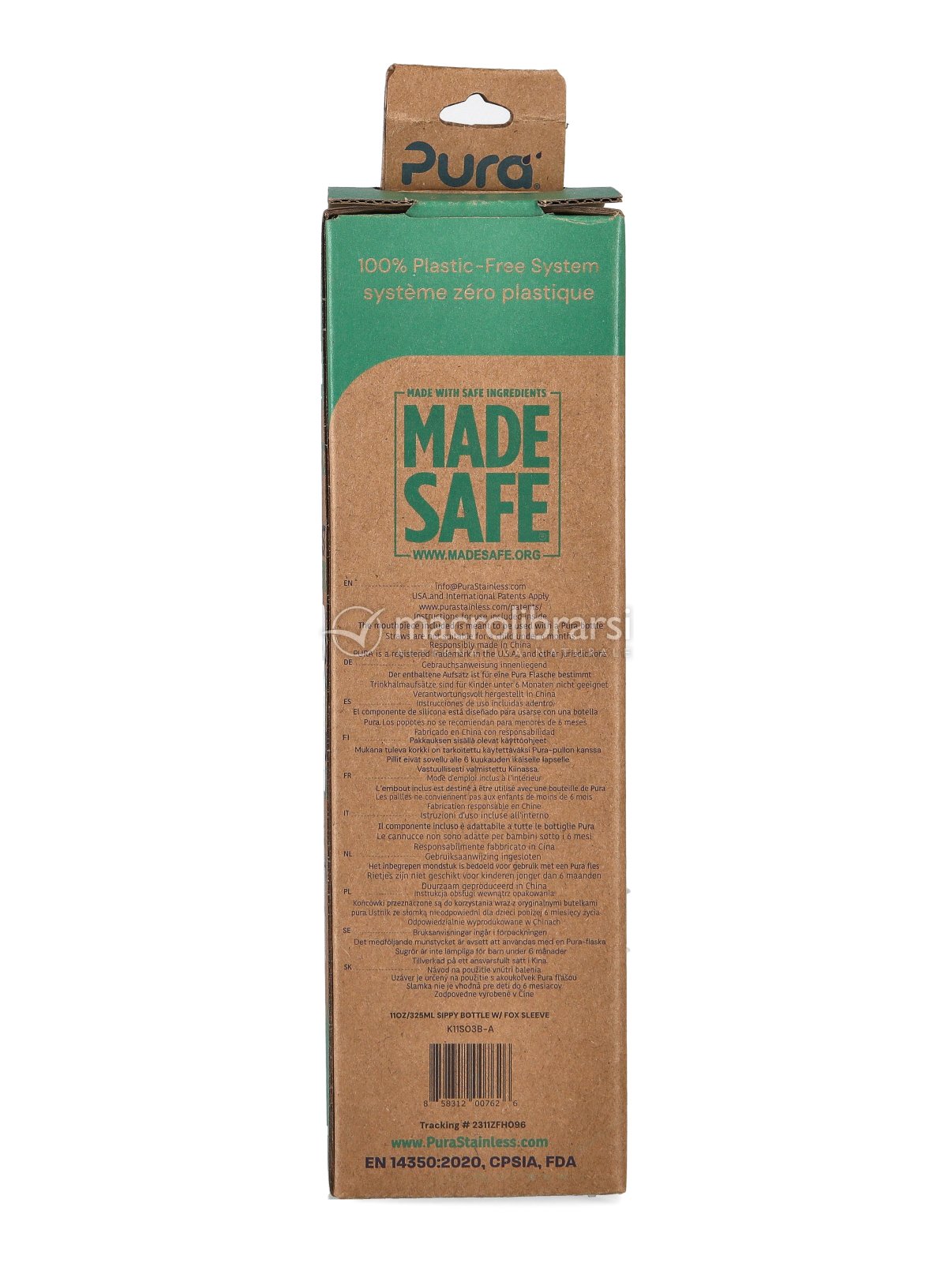 Bottiglia in acciaio inossidabile per alimenti senza plastica e BPA, sicura, igienica, resistente e leggera. Può contenere fino a 325 ml di liquido.