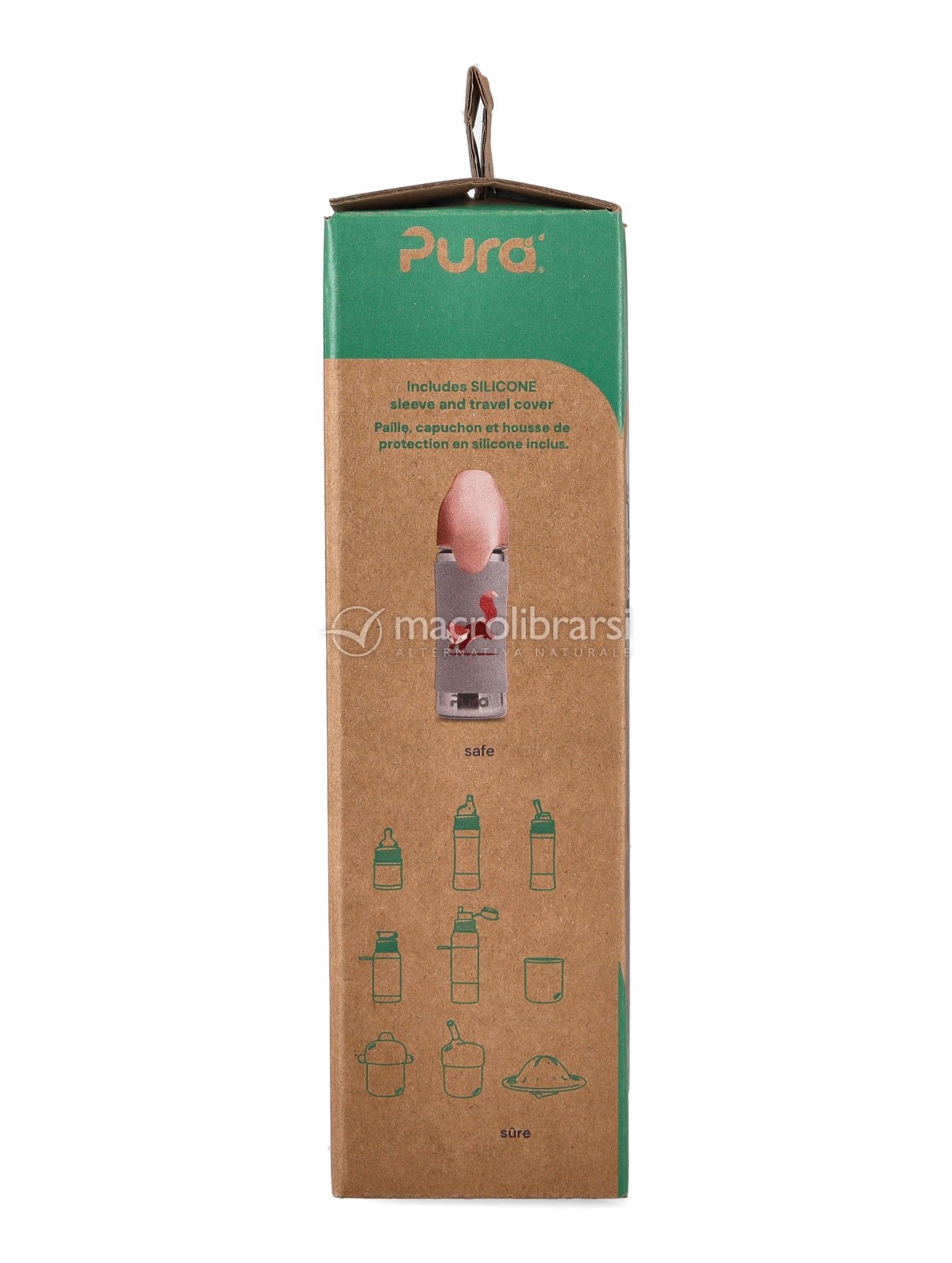 Il beccuccio in silicone è adatto ai bambini dai 6 mesi che gradualmente imparano a bere dal bicchiere e può anche essere sostituito con altri accessori di Pura (tettarelle, cannucce, tappi).