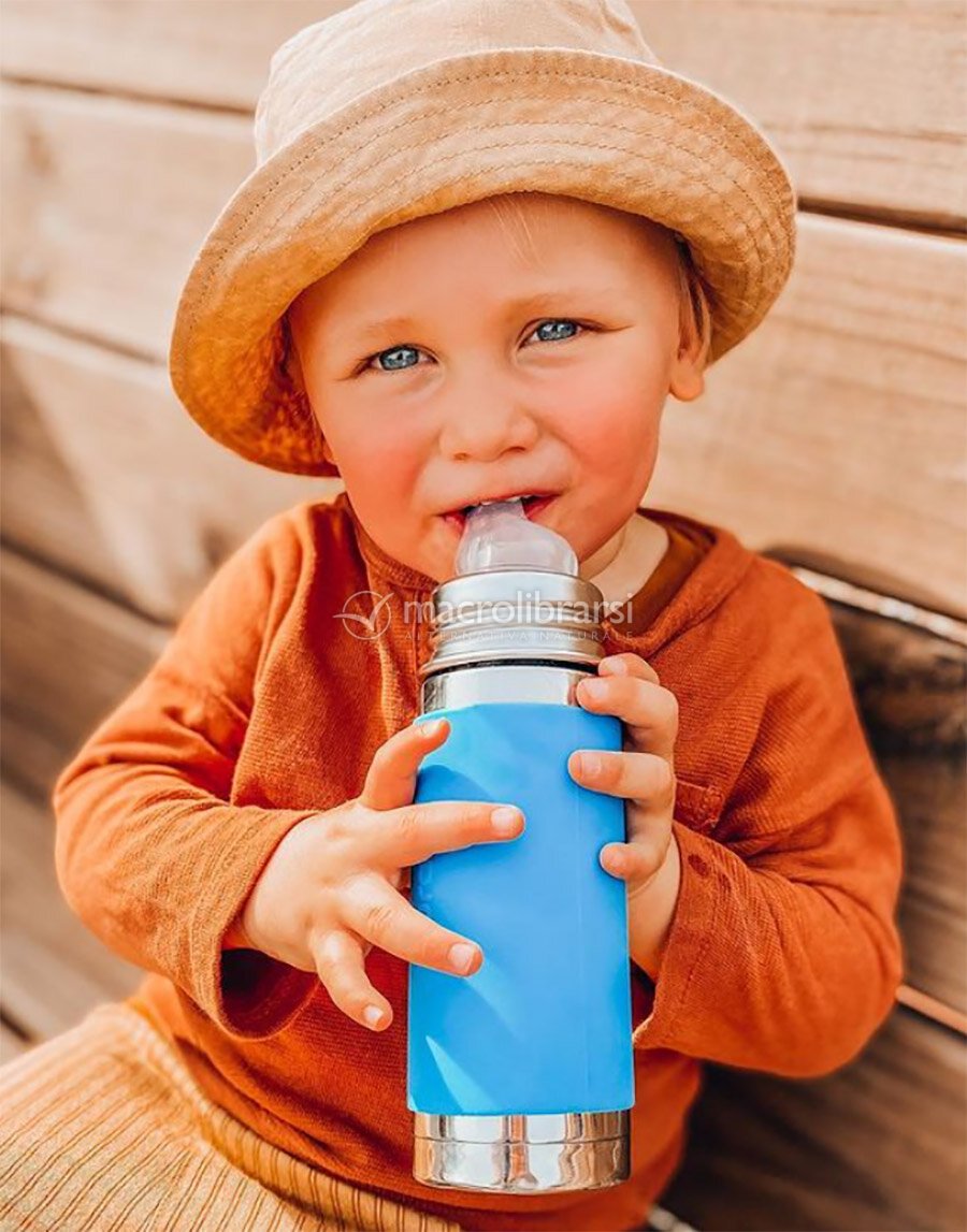 Ho acquistato la versione mini per il mio bimbo di quasi due anni, dopo aver testato la borraccia più grande con tappo sport. Ottimo prodotto in acciaio e silicone medicale, lavabile in lavastoviglie, tiene bene il fresco nonostante non sia termica. Unica piccola pecca, quella del bimbo si è ammaccata e stondata sul fondo dopo pochi giorni e diverse cadute. Un fondo un po' più spesso forse aiuterebbe... Oppure consiglio di comprare a parte il proteggi fondo in silicone almeno per quelle dei piccoli.