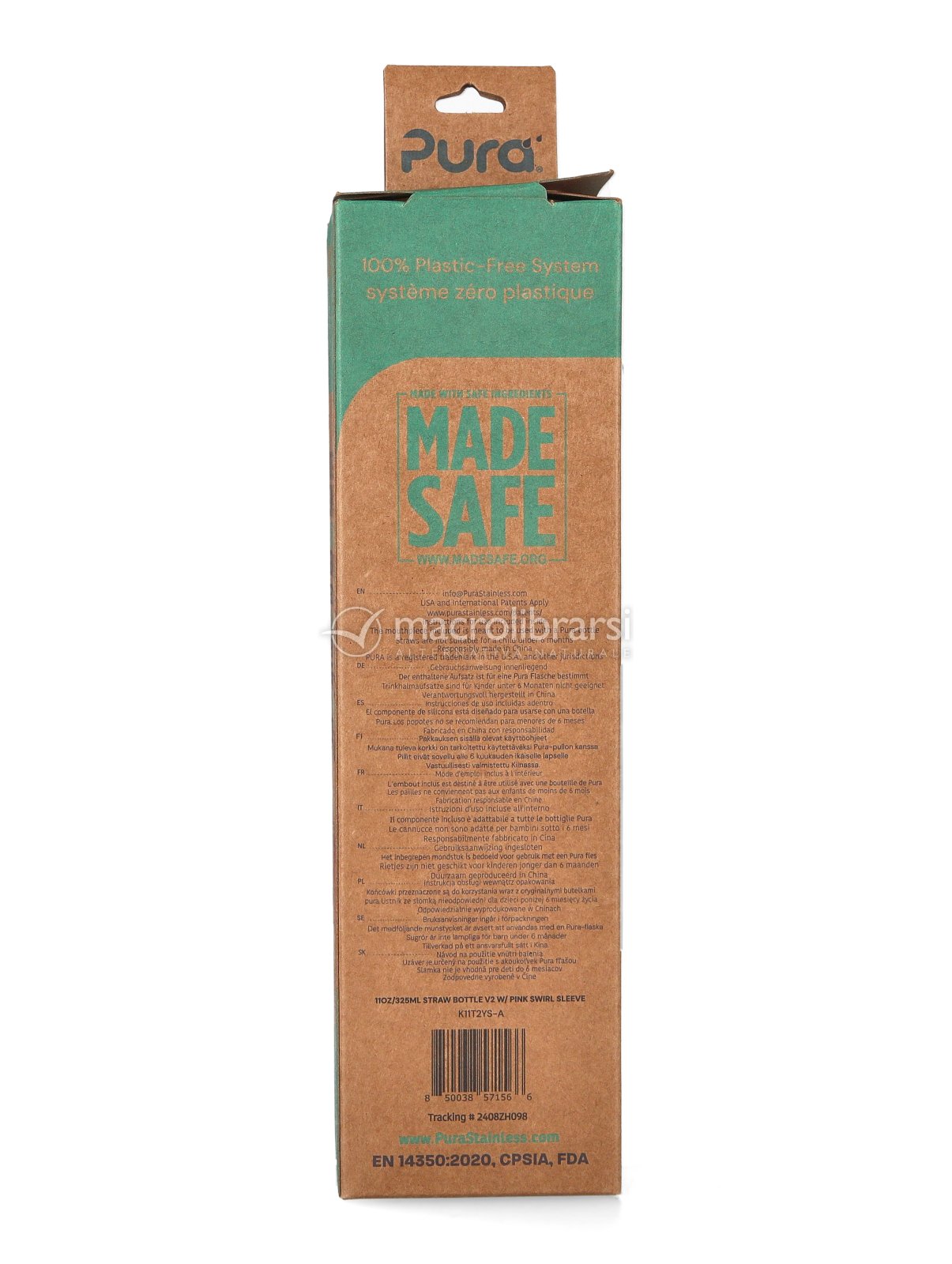 | Confezione | Bottiglia da 325 ml + cannuccia in silicone + tappo da viaggio |