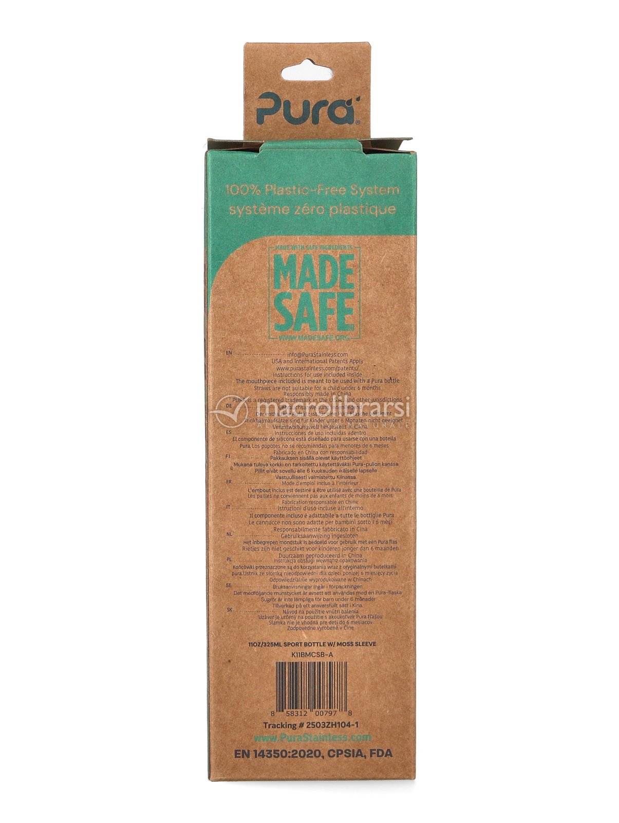 | Confezione | Bottiglia da 325 ml + tappo in silicone |