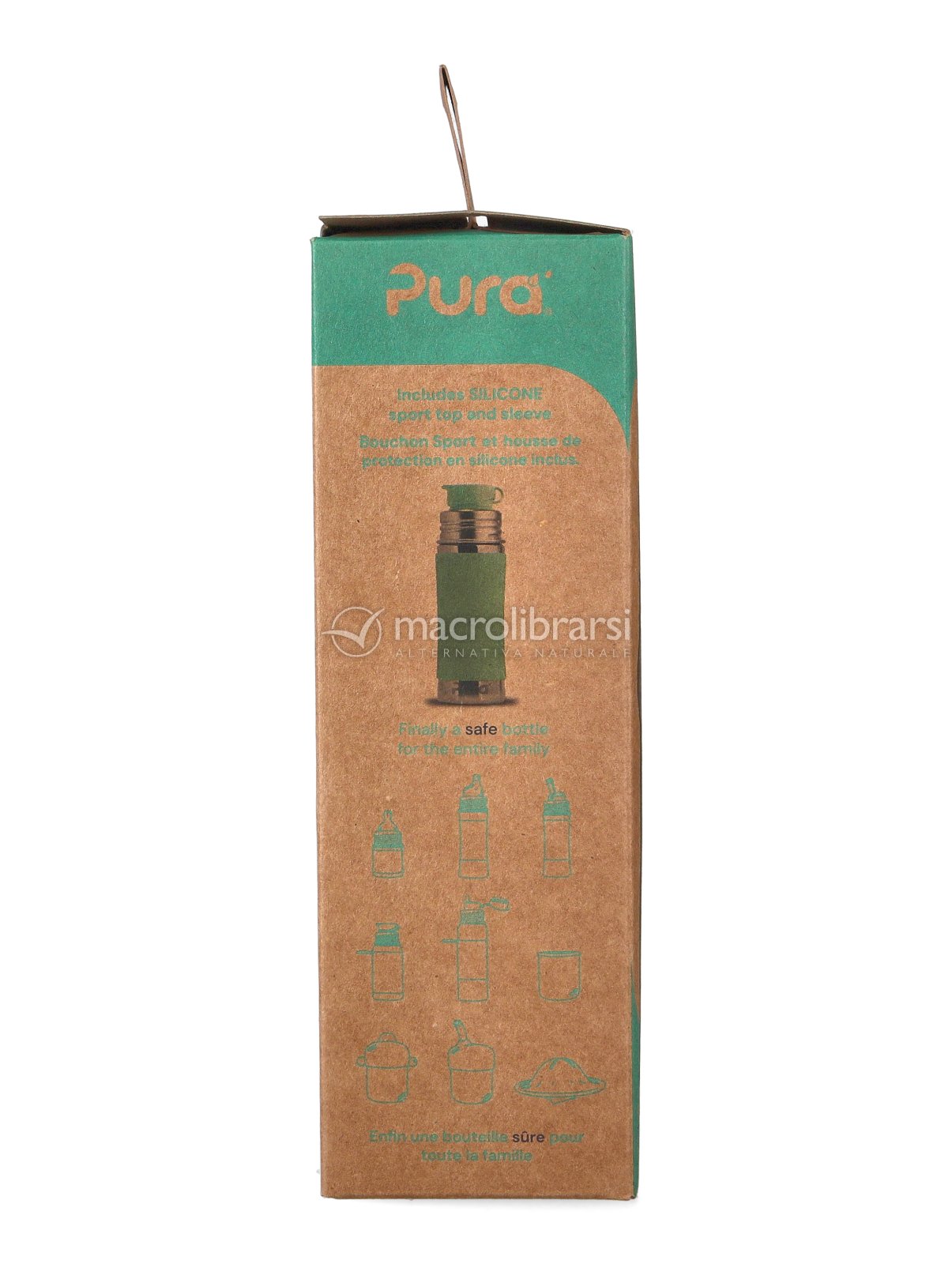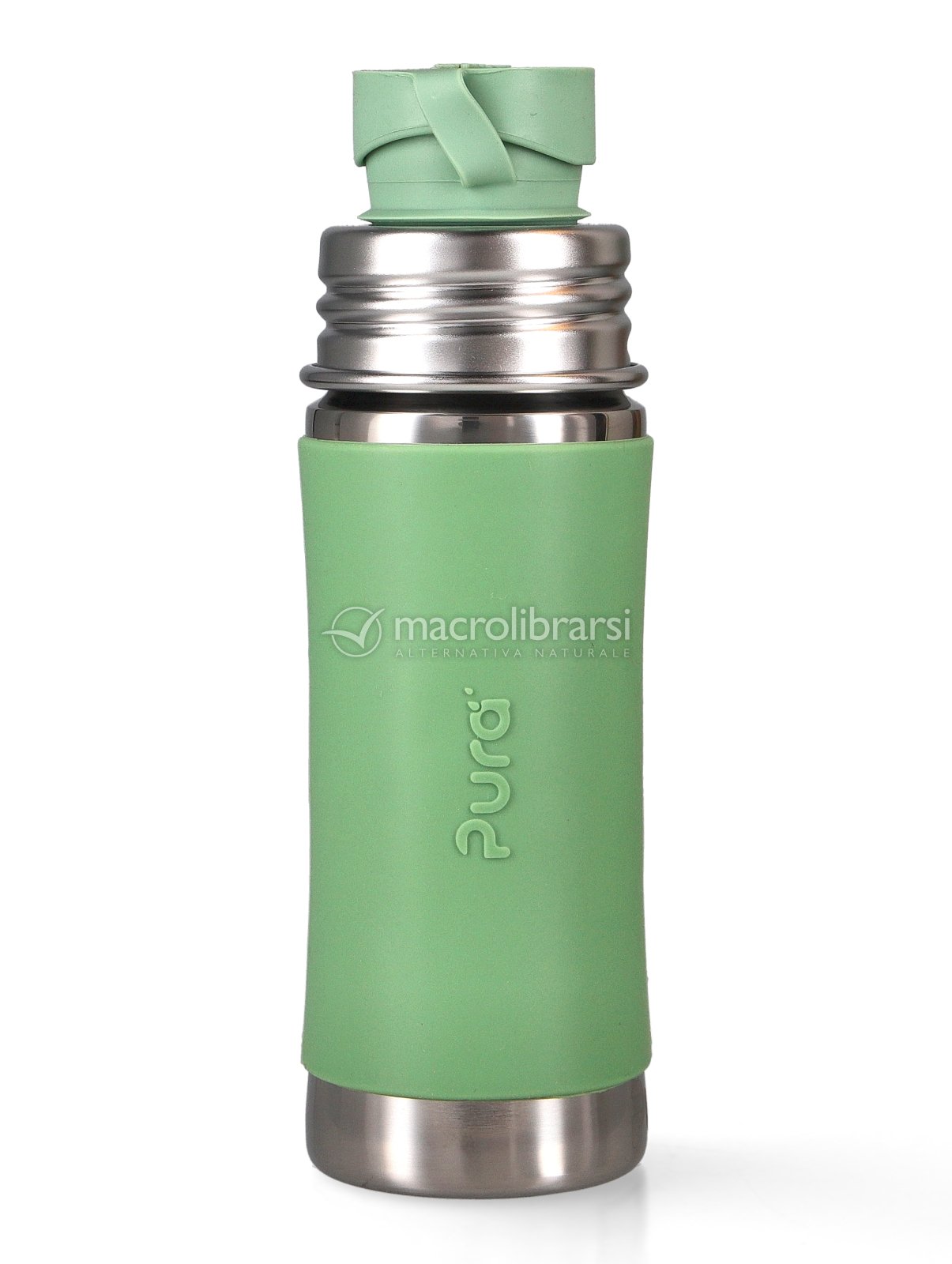 Il tappo in silicone può essere sostituito con altri accessori di Pura (tettarelle, beccucci e cannucce).