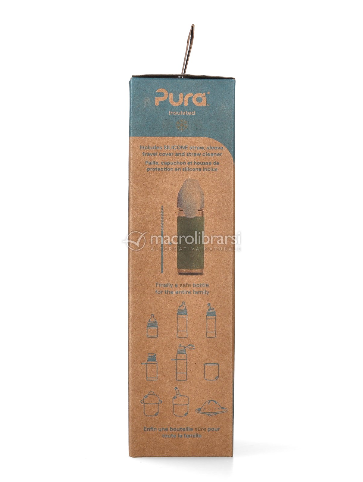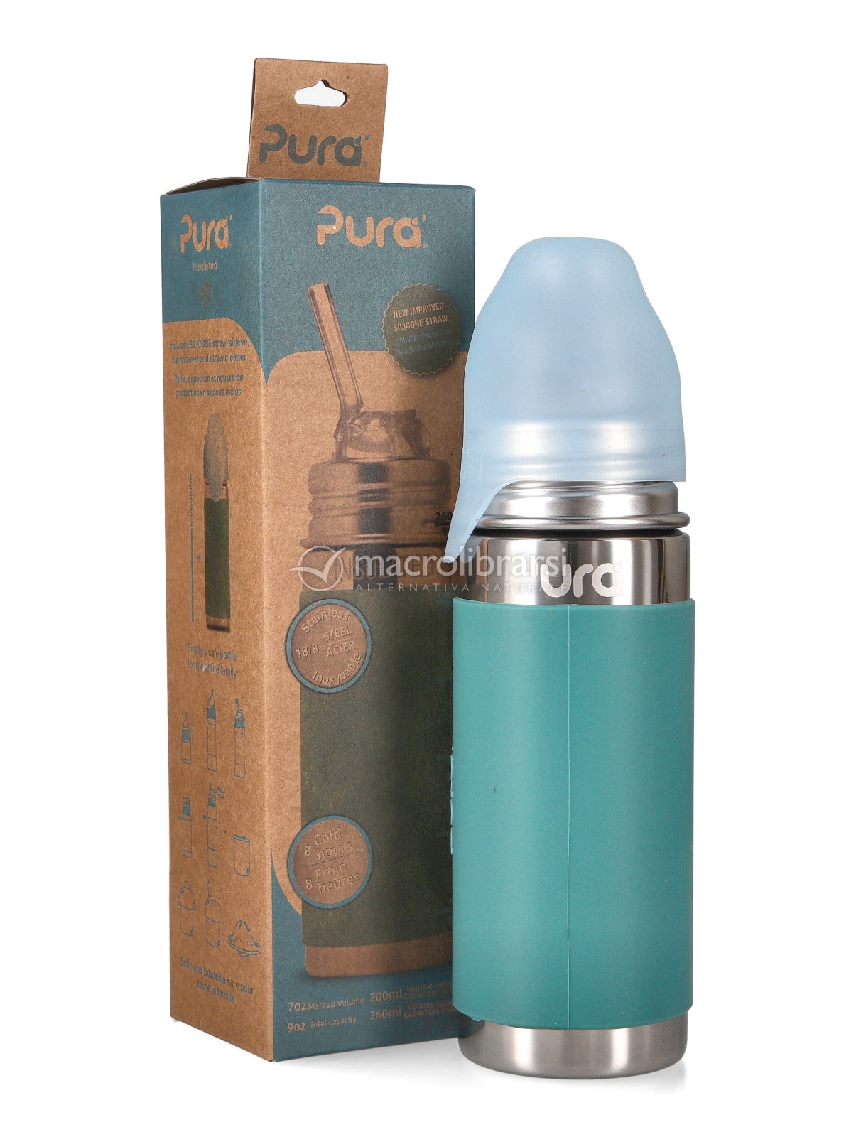 Il beccuccio in silicone è adatto ai bambini dai 6 mesi che gradualmente imparano a bere dal bicchiere e può anche essere sostituito con altri accessori di Pura (tettarelle, cannucce e tappi).