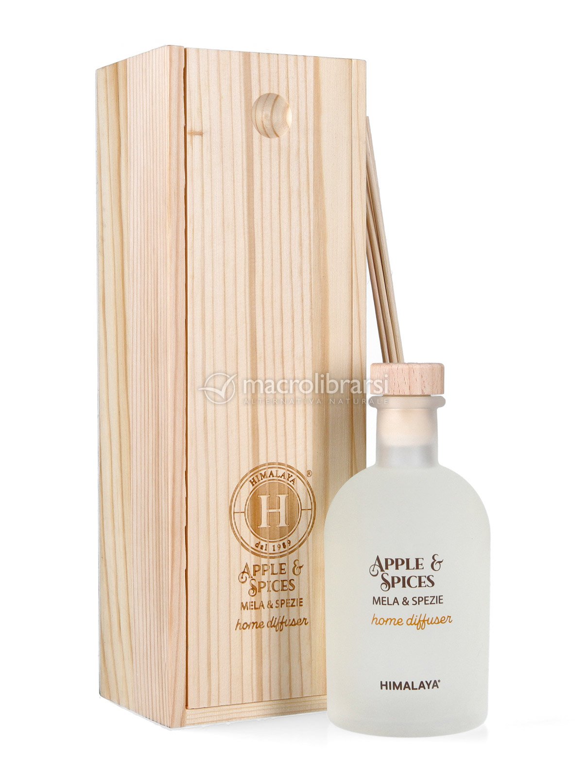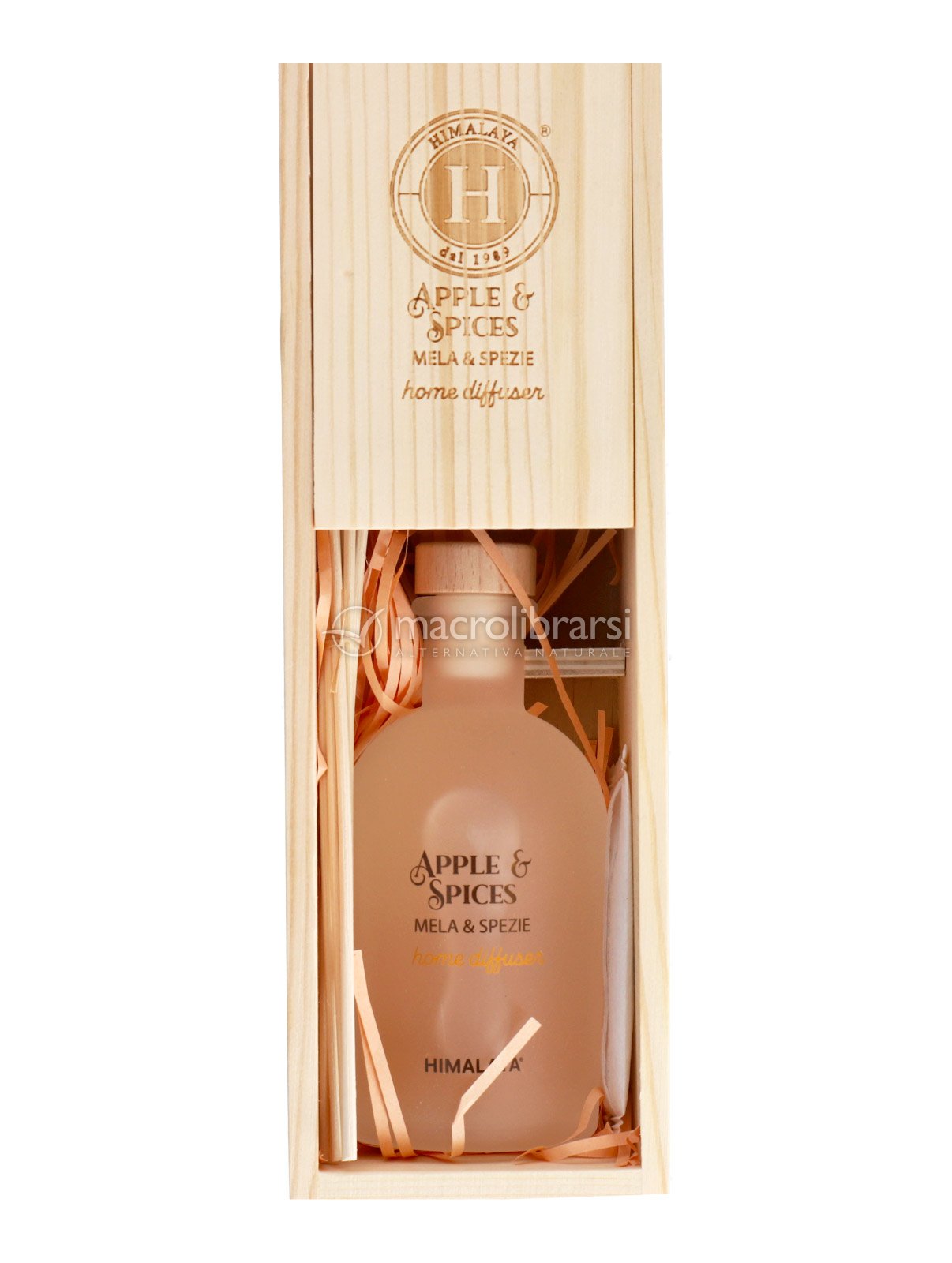 Himalaya Serenity è un diffusore a bastoncini in un’elegante boccetta di vetro, custodita in un box in legno con stampa a fuoco. La miscela di alta qualità diffonde una fragranza avvolgente e confortevole, dove la dolcezza della mela incontra il calore delle spezie.