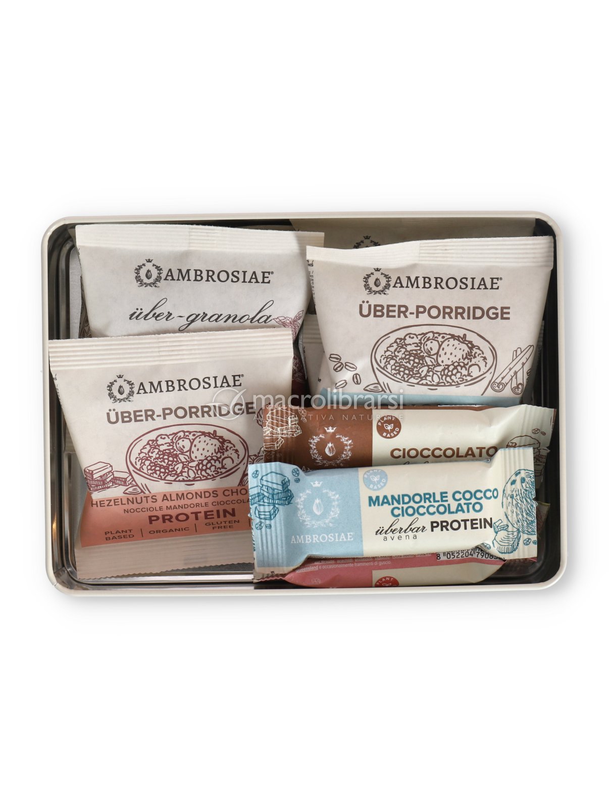 La Box Xmas ÜberGranola è un assortimento esclusivo di cereali croccanti, porridge e barrette bio, pensato per accompagnare ogni momento della giornata con gusto e benessere.