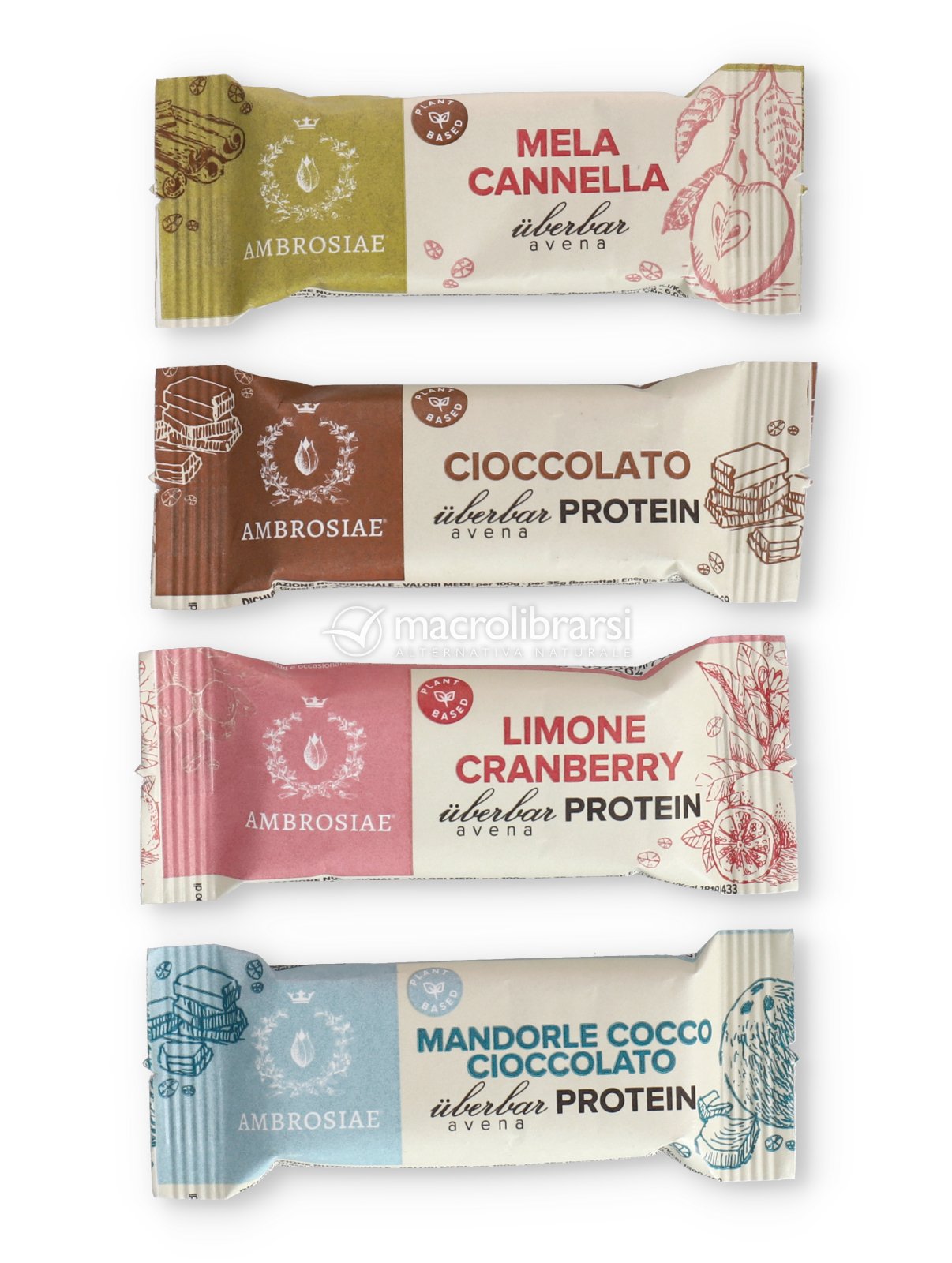 - ÜberBar Avena Protein Limone Cranberry (35 g): Una combinazione fresca e fruttata, con mirtilli rossi e limone italiano.