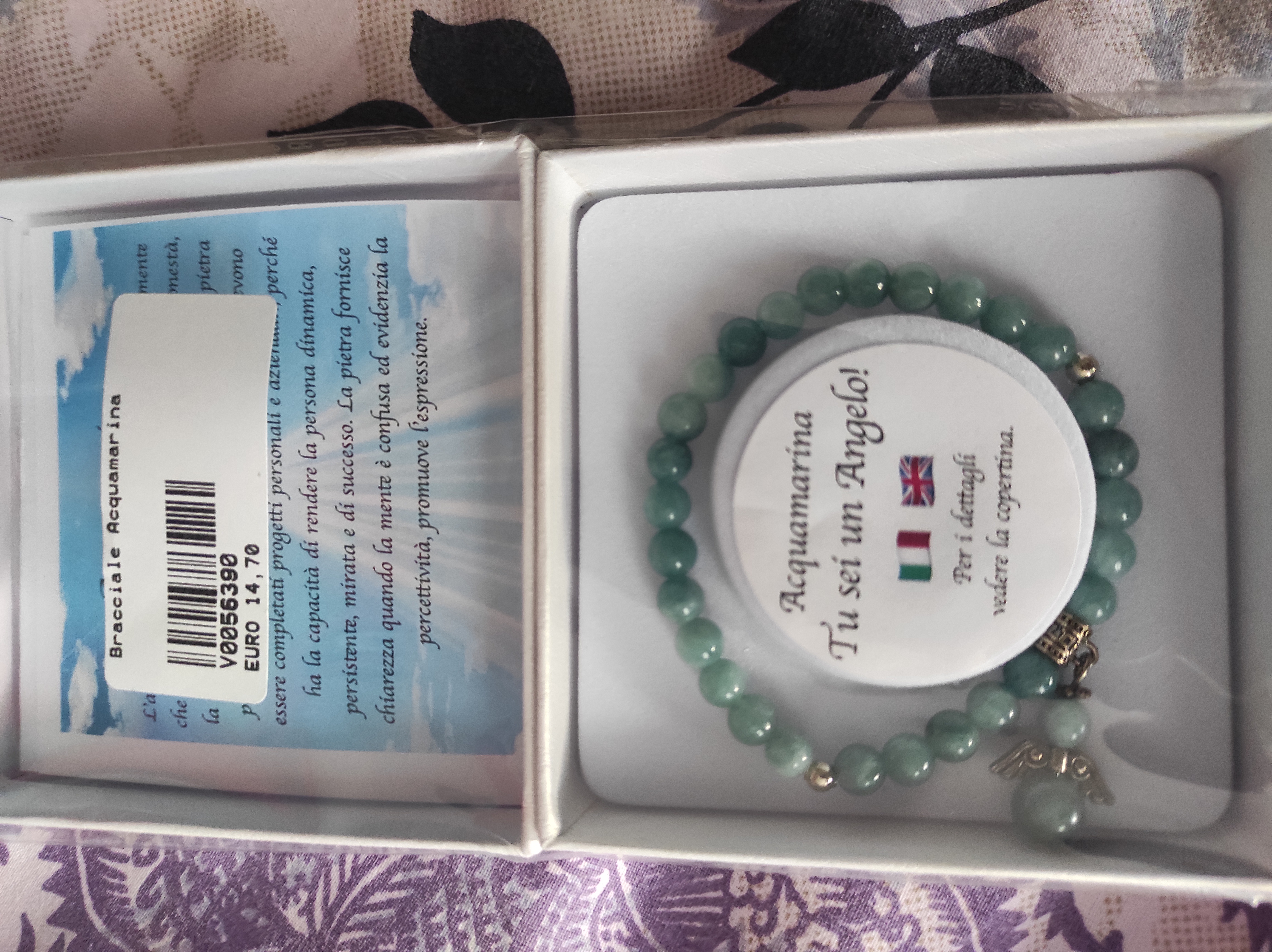 Sono molto contenta di questo braccialetto, allegro, leggero, con colori tenui e delicati. Lo tengo sempre con me, anche solo in tasca, per il suo effetto benefico, almeno su di me. Grazie.