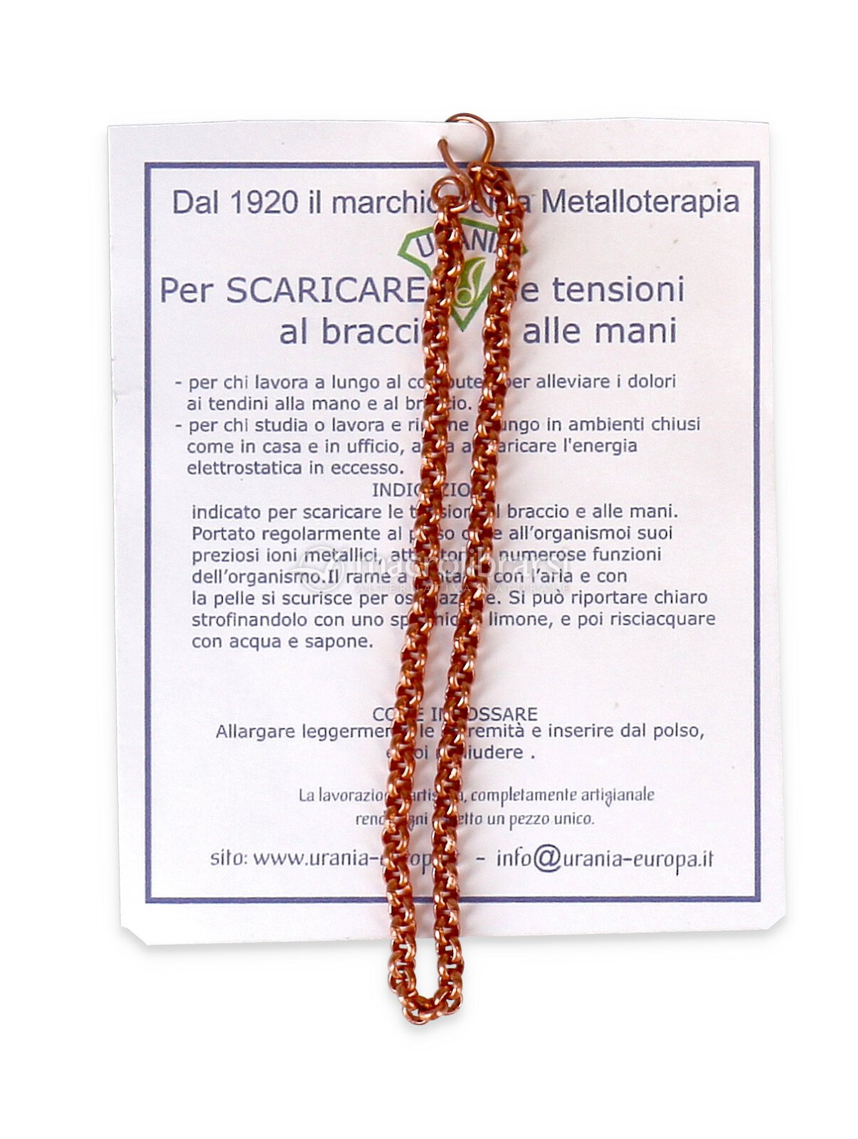 Questo bracciale in rame con catena fine e' un ottimo prodotto. Si puo' regolare sulle varie dimensioni dei polsi. Il rame poi fa sempre la sua figura. Consigliato.