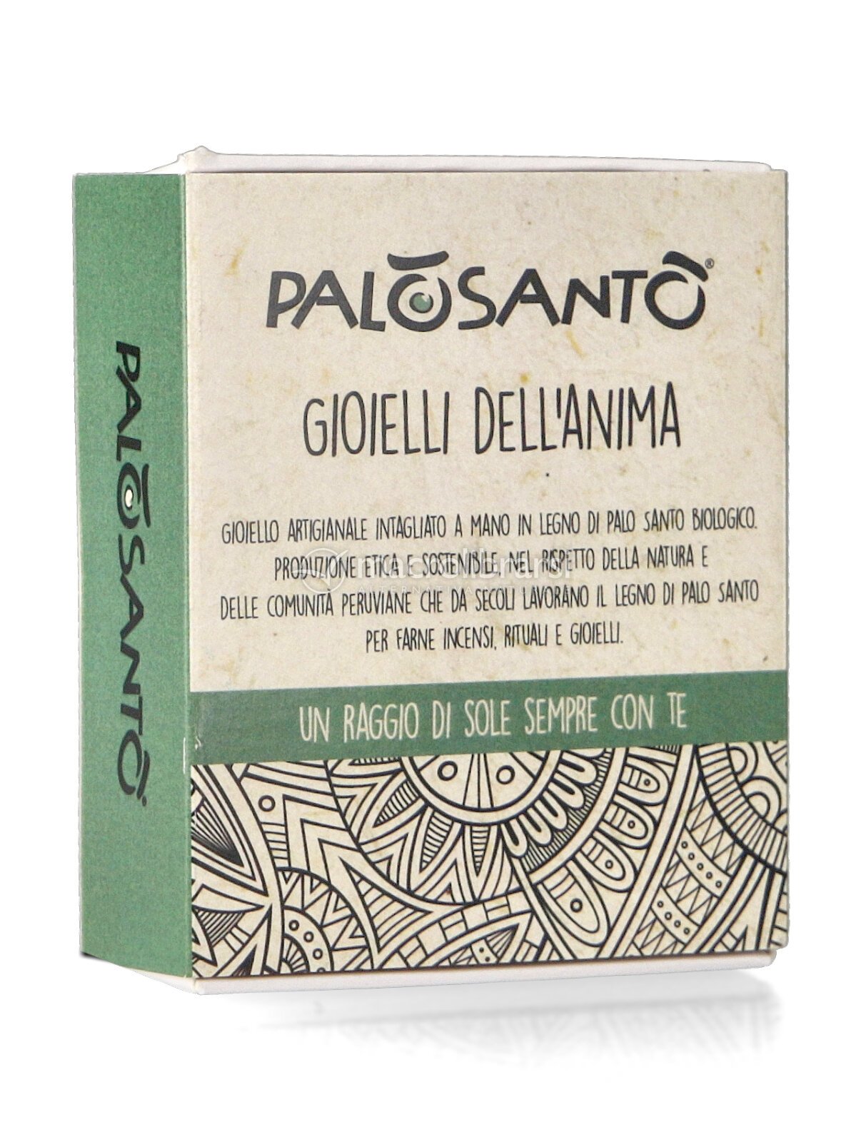 Il legno di Palo Santo, caratterizzato da una durezza media e da venature uniche e variegate, si presta magnificamente alla lavorazione artigianale, conferendo a ogni gioiello una specifica e inconfondibile personalità. Il suo profumo naturale, che nell'albero femmina è particolarmente delicato, può essere rinnovato e intensificato con l'olio essenziale, creando un connubio simbolico che ripristina la piena forza creativa e l'energia armonizzante dell'essenza.