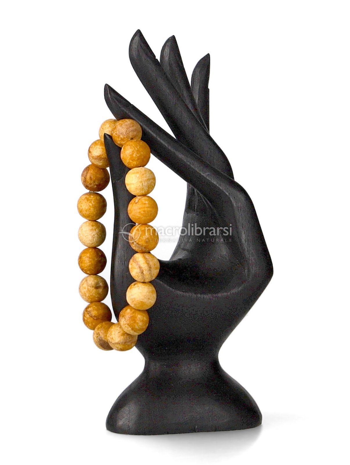 Il Bracciale palo santo ha delle perle piuttosto grosse, la circonferenza totale del bracciale abbondante. Le perle emanano un intenso profumo che va scemando man mano. È possibile ripristinarlo con alcune gocce di olio essenziale di palo santo. Io lo indosso quotidianamente perché amo il suo profumo e portarlo sempre con me è una grande occasione