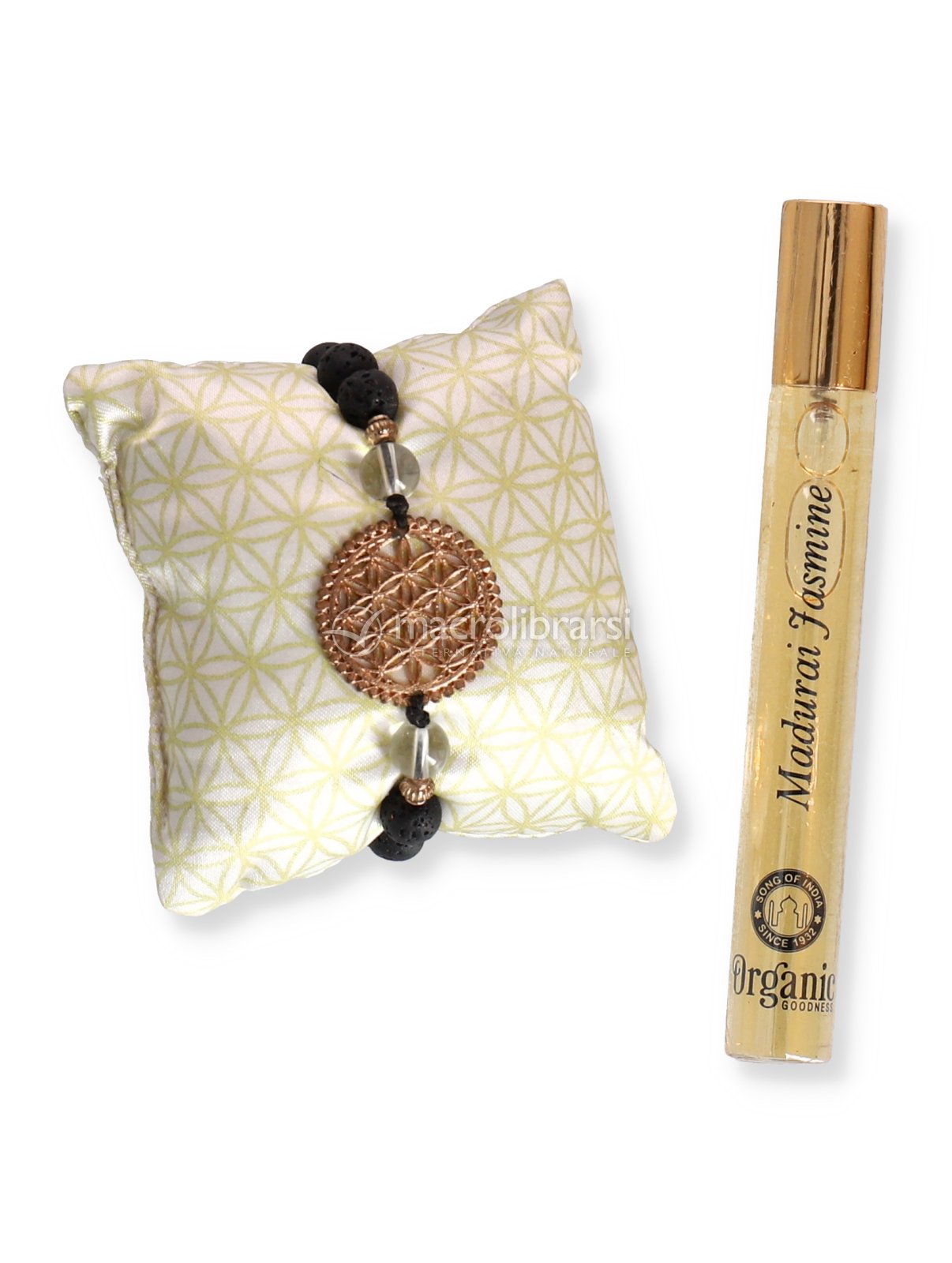 Un braccialetto regolabile con ciondolo Fiore della Vita con fragranza al gelsomino!