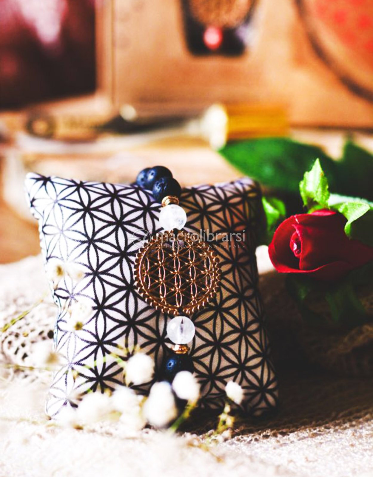 L’ho indossato non appena ricevuto. Avere il fiore della vita sul polso che mi permette di guardarlo ogni volta in cui ne sento il bisogno mi rassicura e mi centra. Molto interessante la possibilità di mettere il bracciale sul cuscinetto su cui spruzzare l’essenza agli agrumi allegata. Non sempre lo faccio ma quando lo faccio è un elemento in più perché l’aromaterapia enfatizza gli effetti benefici. Le perline del bracciale sono per lo più di pietra lavica. La pietra lavica, originata dal magma, è considerata in cristalloterapia una pietra di radicamento e protezione che unisce le energie telluriche (Terra) a quelle di fuoco. Le sue proprietà principali includono la stabilità emotiva, la riduzione dello stress, il coraggio, la forza vitale e il sostegno durante i cambiamenti. Unico neo è il filo di chiusura che stringendolo al polso rimane poi a vista penzoloni causando un effetto disordinato e poco raffinato.