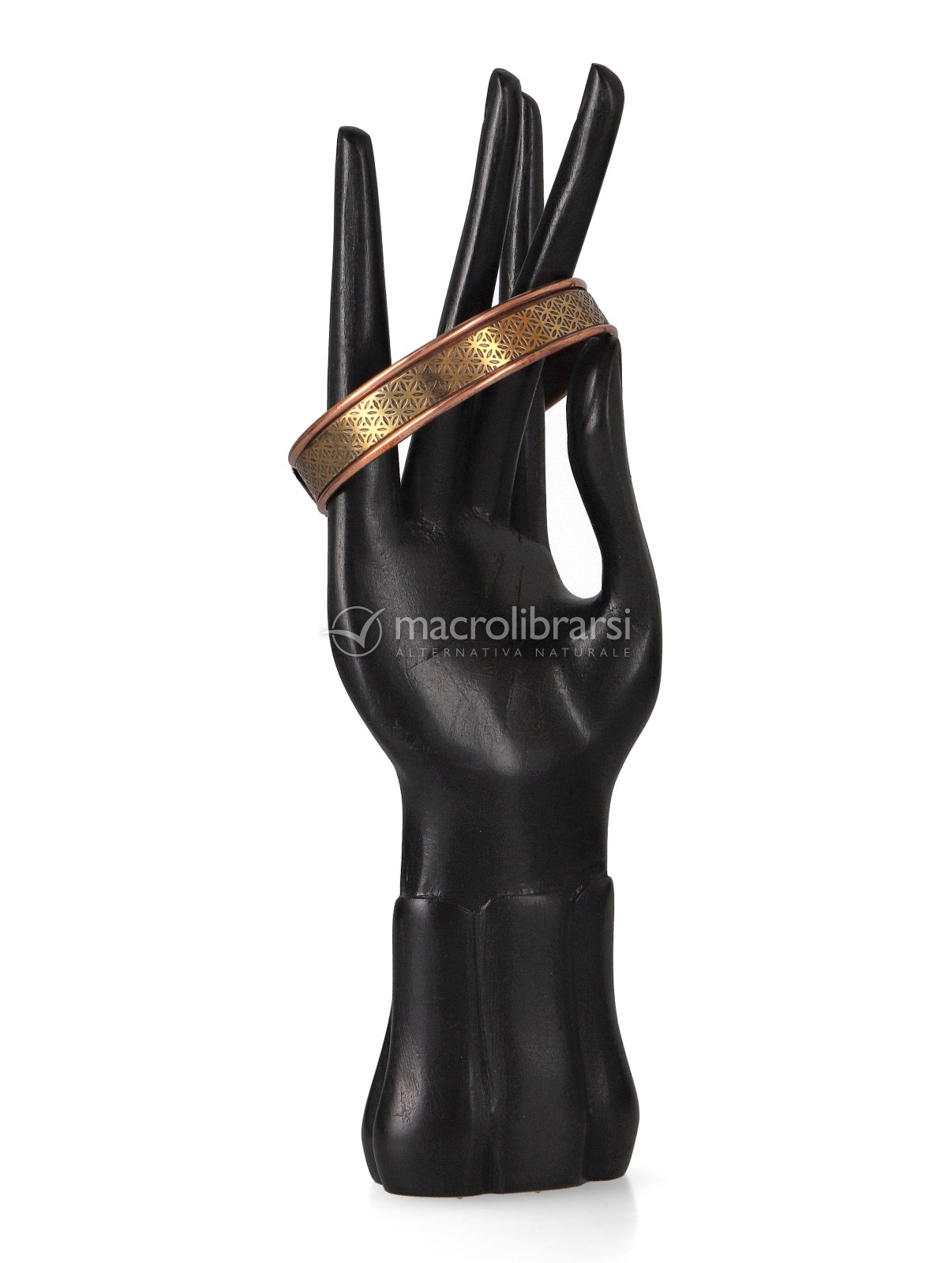 Questo bracciale che ho acquistato x un amico x il suo compleanno e' stato molto gradito, il fiore della vita in esso stampato emana una bella energia, mi ha riferito che da quando lo indossa l' indolenzimento del tunnel carpale si e' molto attenuato, come se il bracciale togliesse l' infiammazzione giorno x giorno, lasciando l' alone sulla pelle tipico del rame proprio xche' lavora, questa persona e' molto contenta xche' non pensava che potesse averne beneficio, invece si e' ricreduto e vorrebbe acquistare anche una collana in rame da indossare la sera e togliere la mattina x problemi alla cervicale, voto 10, qualita' del rame molto buona, con un po' di limone e sale torna splendente in un nano secondo, io ho 2 collane in rame e anelli sempre acquistati su questo sito e ne sono soddisfatta xche' la qualita' del rame e' al top ? grazie Macrolibrarsi ? saluti, Sonia.❤