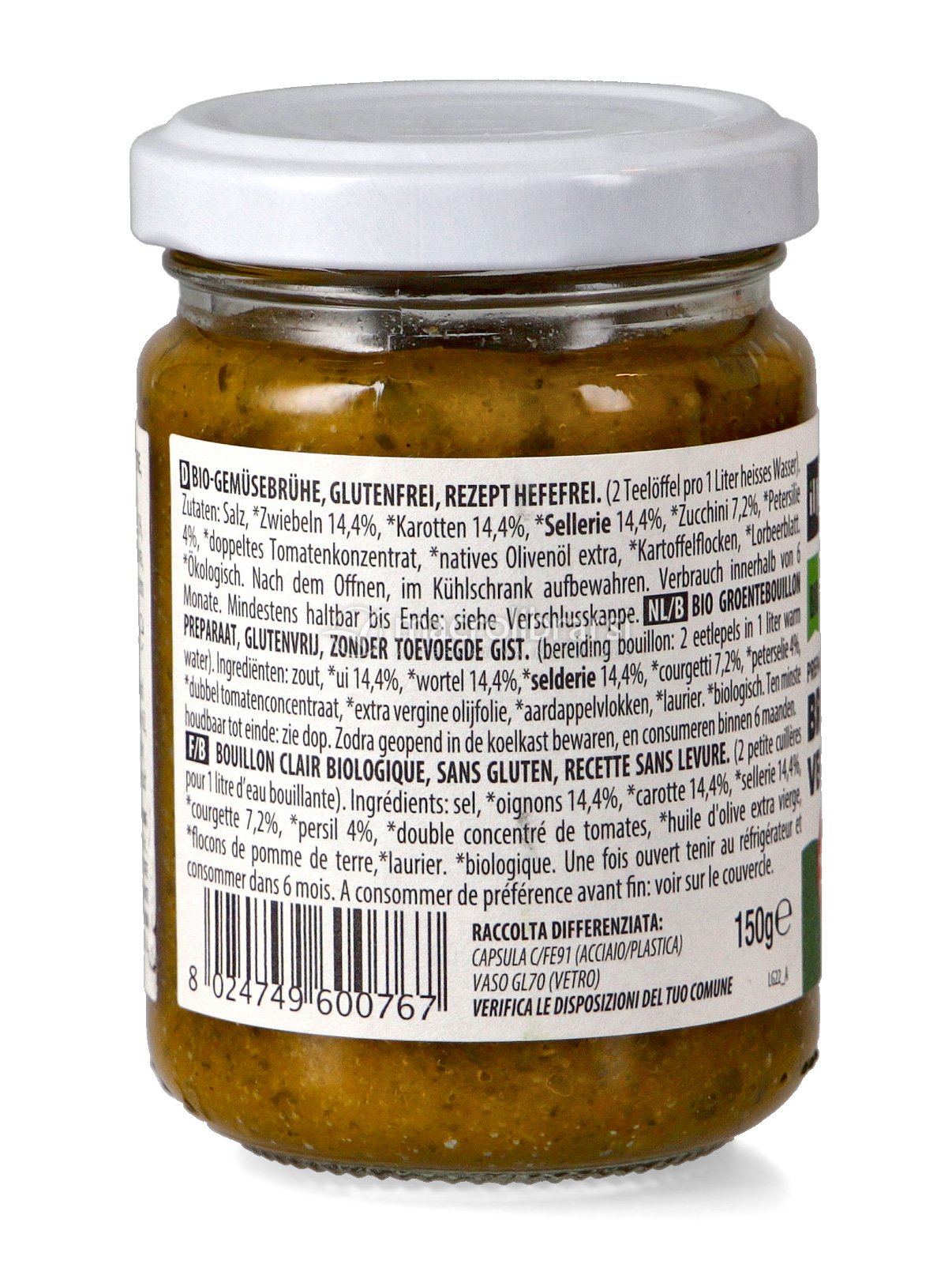 Perfetto preparato vegetale per minestre e piatti gustosi. Lo uso per un semplice brodo per minestrina, lo aggiungo a qualche verdura spadellata (credo sia buono anche con piatti di carne o pesce ma io non ne consumo quindi non ho provato). Il vasetto in vetro lo apprezzo molto perché credo che si conservi meglio e mantenga integre le proprietà, inoltre a prodotto terminato riutilizzo il micro vasetto per le spezie sciolte o altro. Consiglio !