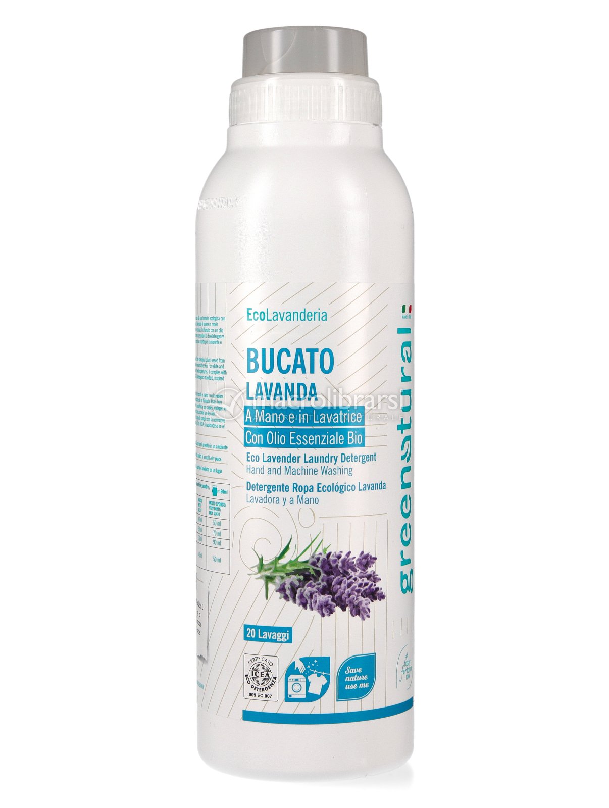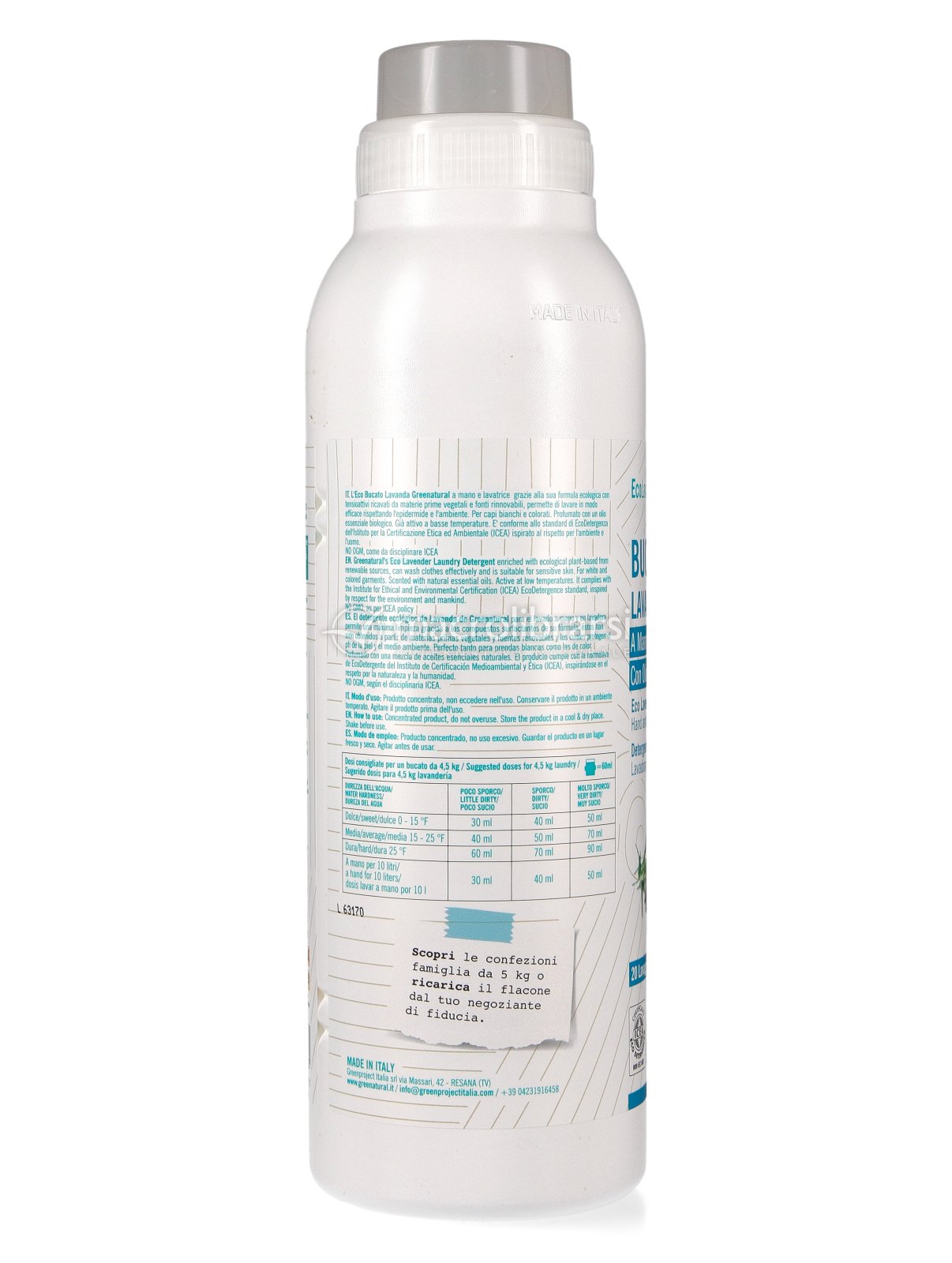 L’ECODETERGENTE GREENATURAL PER BUCATO LAVANDA a mano e lavatrice ideale per il lavaggio di capi bianchi e colorati.