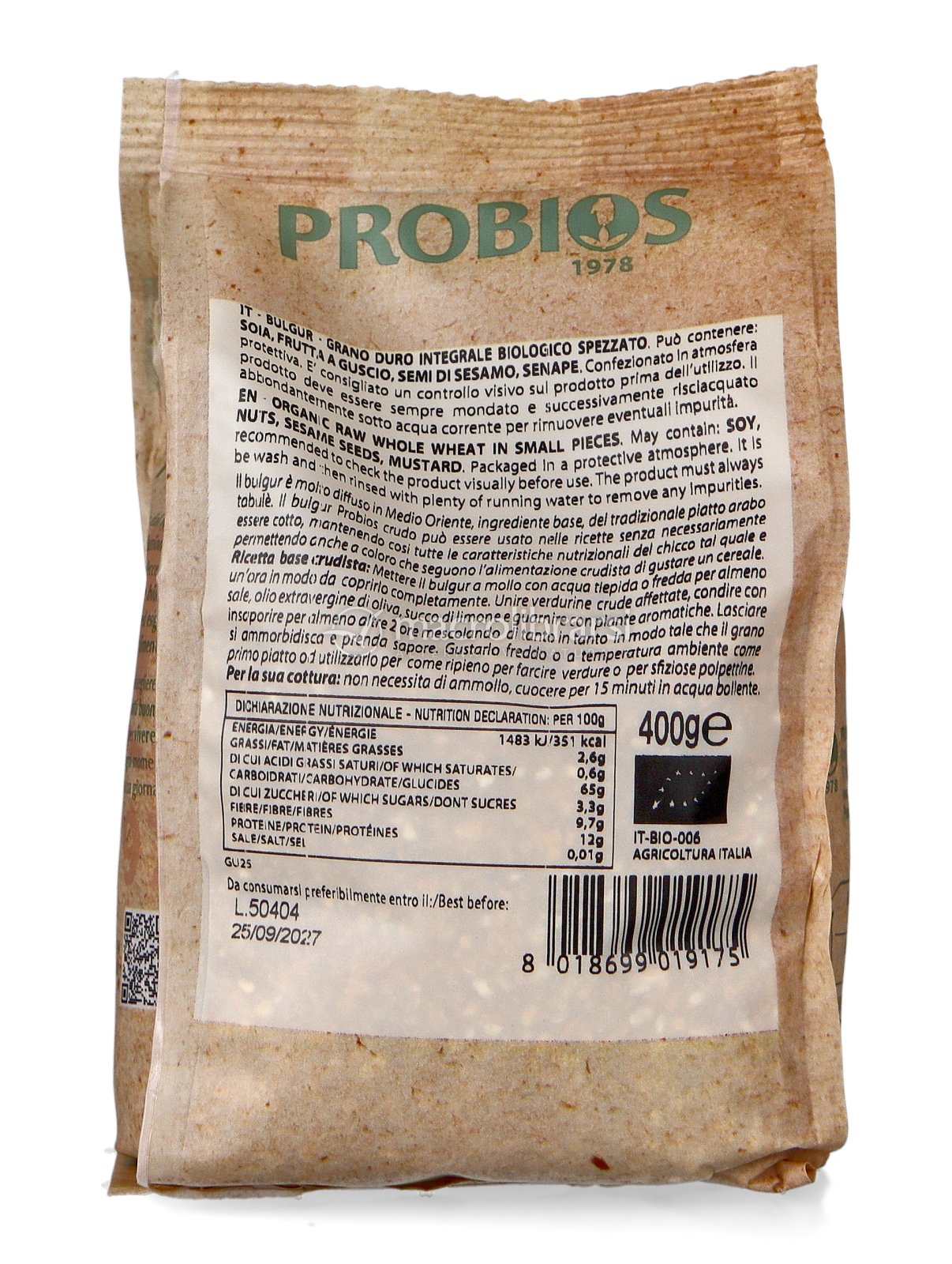 Questo bulgur crudo di Probios è realizzato con grano duro integrale biologico frantumato e ridotto in piccoli pezzetti. Può essere utilizzato per ricette crudiste oppure cotto come primo piatto.