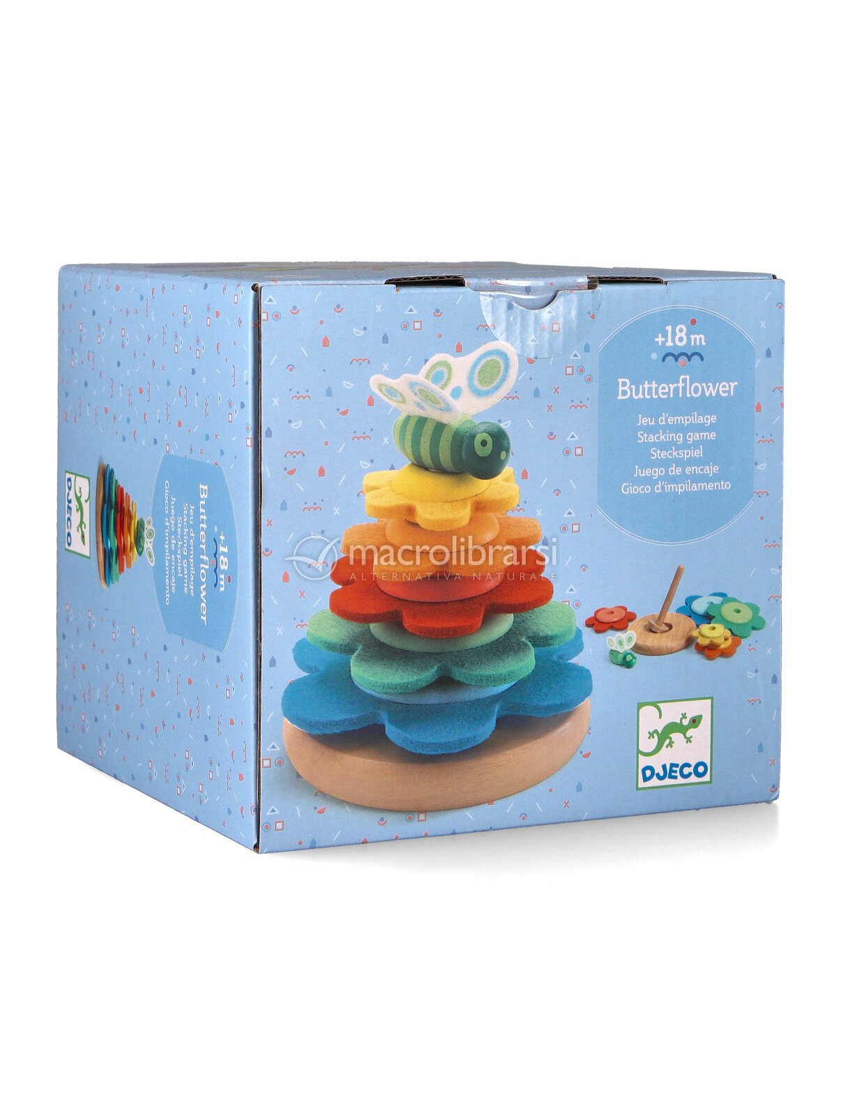 Colorata, tattile e progettata per stimolare il gioco attivo: Butterflower è la torre impilabile firmata Djeco, pensata per accompagnare lo sviluppo sensoriale e motorio dei bambini a partire dai 18 mesi.