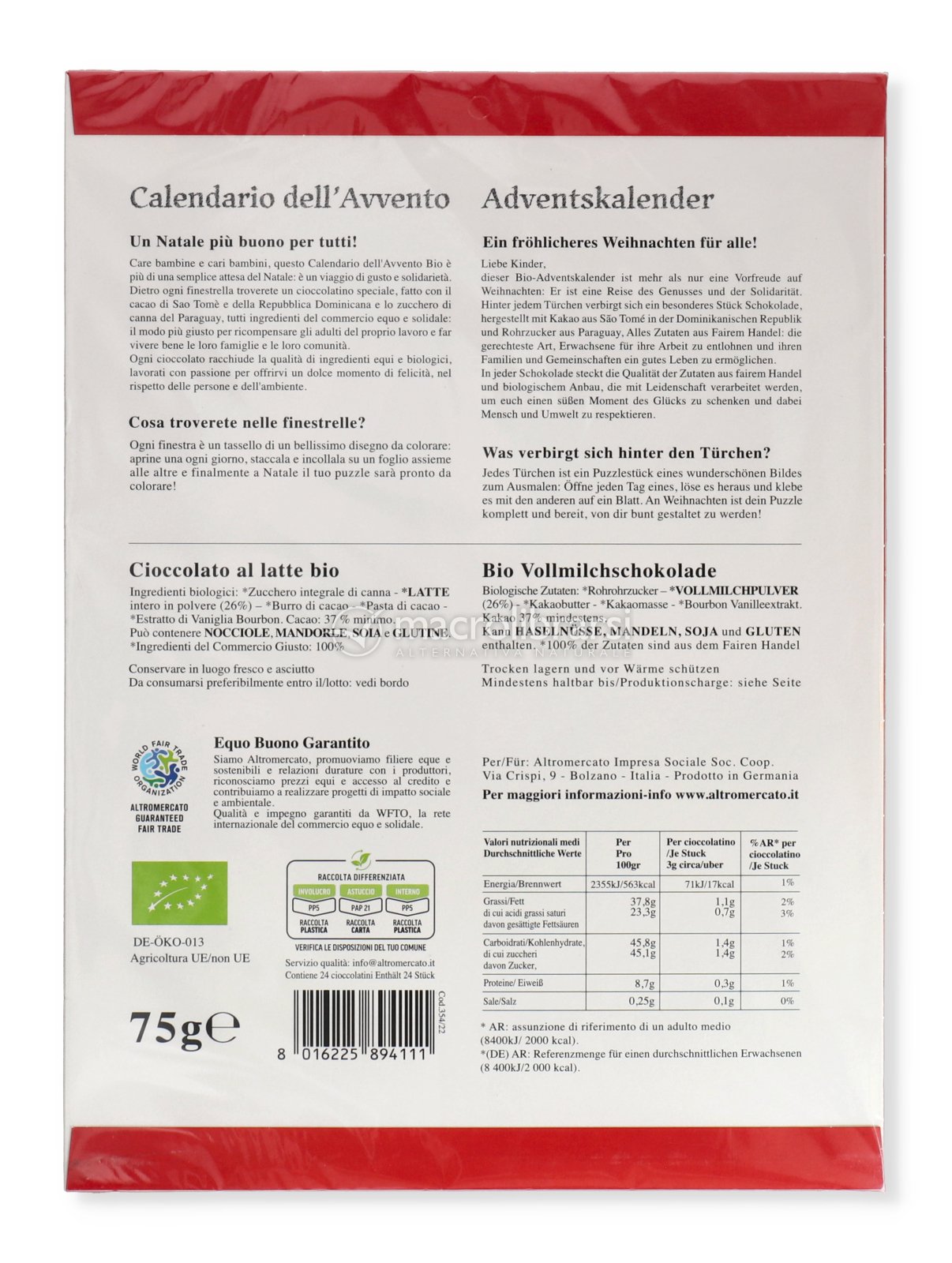 Calendario dell'avvento solidale con cioccolatini al latte biologici!