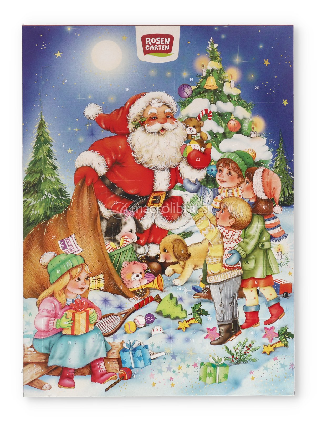 direi che questo prodotto lo definisco il più bel calendario dell'avvento per un bambino! guardate che bei colori, col suo Babbo natale e le sue finestrelle che fanno proprio venire voglia di festeggiare il natale con qualcosina di dolce. io l'ho regalato al mio nipotino che sogna sempre un dolcino quando si sveglia e con questi ingredienti sicuri sto serena perché i cioccolatini sono realizzati con latte proveniente da allevamento biologico e c'è il latte intero che gli da tutte le sostanze nutritive, non ci sono conservanti o schifezze né oli vari di palma o altro che fanno solo male. E' fabbricato in Germania, paese rinomato per il buon cioccolato e la sua produzione assieme ai cugini austriaci. Vorrò comprare altri prodotti bio di questa nuova marca Rose Garten che ho appena scoperto e questa settimana che il suo prezzo è in ribasso ne acquisto altri 3 per regalarli ad altri membri della famiglia e amici son certa li apprezzeranno e li mangeranno con gusto. L'anno scorso sono rimasta schifata da Ferrero!