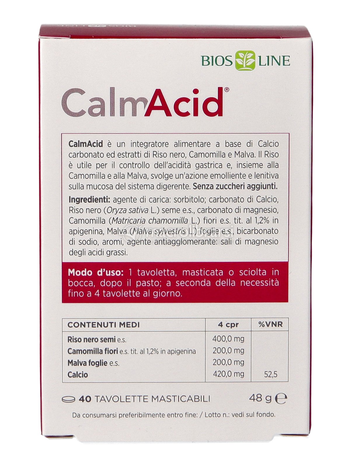 CalmAcid di Bios Line è un integratore alimentare formulato per contrastare l'acidità gastrica.