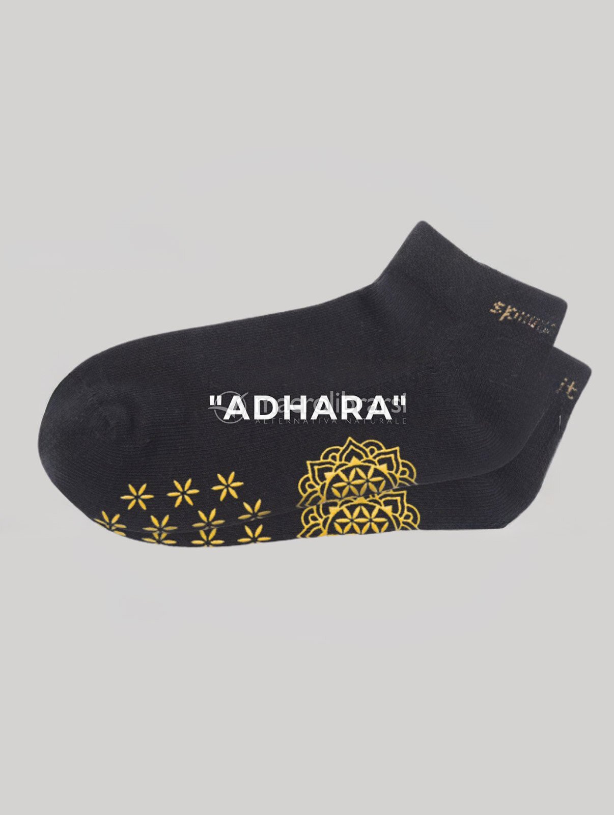 I calzini Adhara Neri ed oro, il cui nome deriva dal sanscrito e significa "sostegno" o "base", offrono stabilità e sicurezza durante la pratica yoga. Concepiti come un supporto silenzioso, permettono di concentrarsi sul respiro e sui movimenti, eliminando il timore di scivolare.