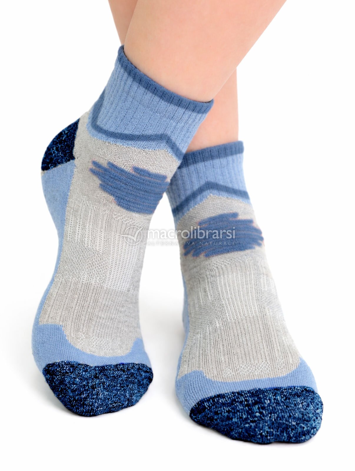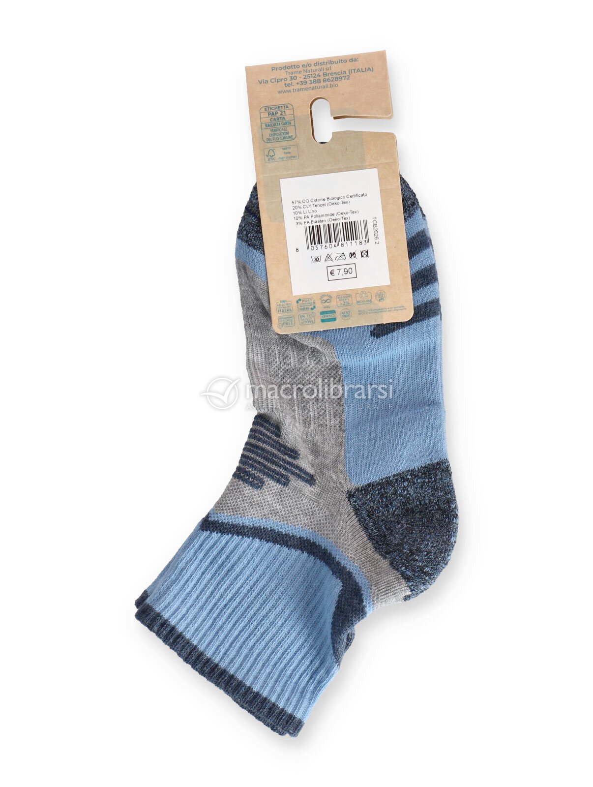 Questi calzini bimbi della collezione esclusiva Trame Sportive START-TREK sono realizzati in cotone biologico certificato e arricchiti da inserti in lino, ideali per mantenere il piede fresco e ben aerato. La soletta rinforzata offre maggiore comfort e resistenza, mentre la struttura avvolgente assicura una vestibilità comoda e stabile.