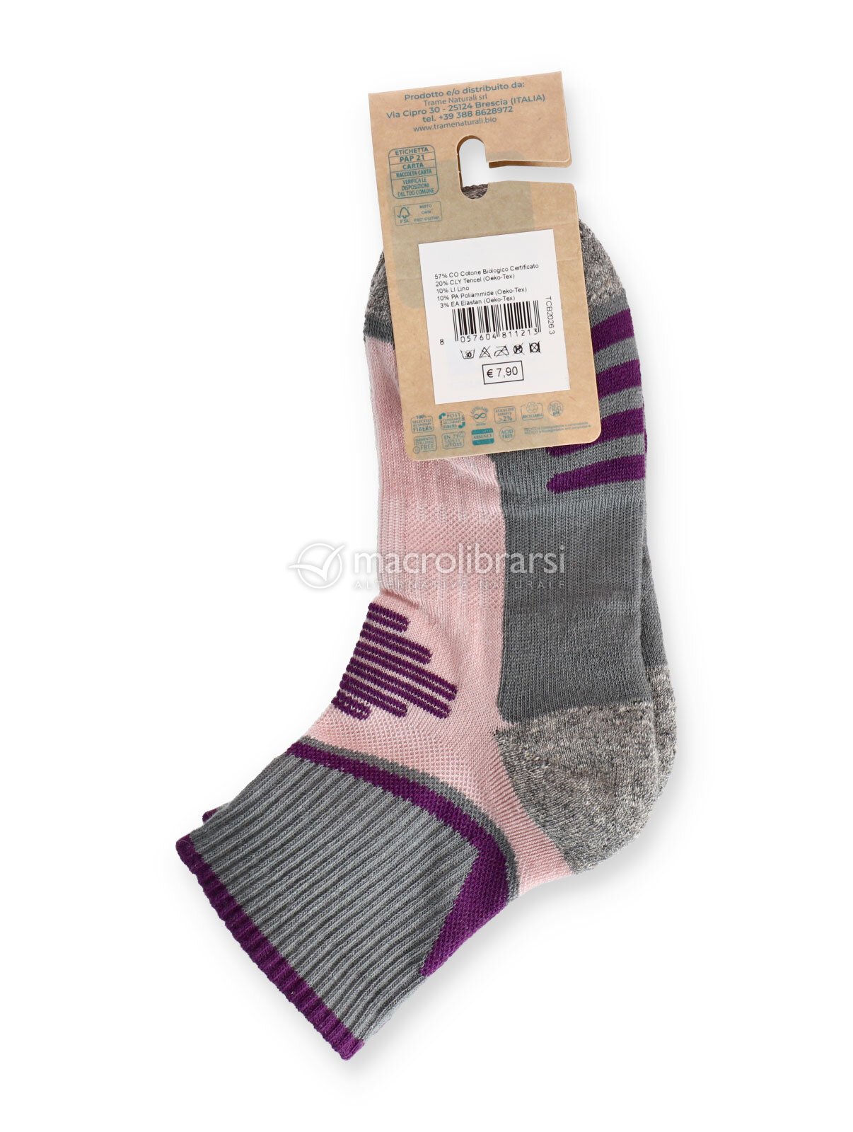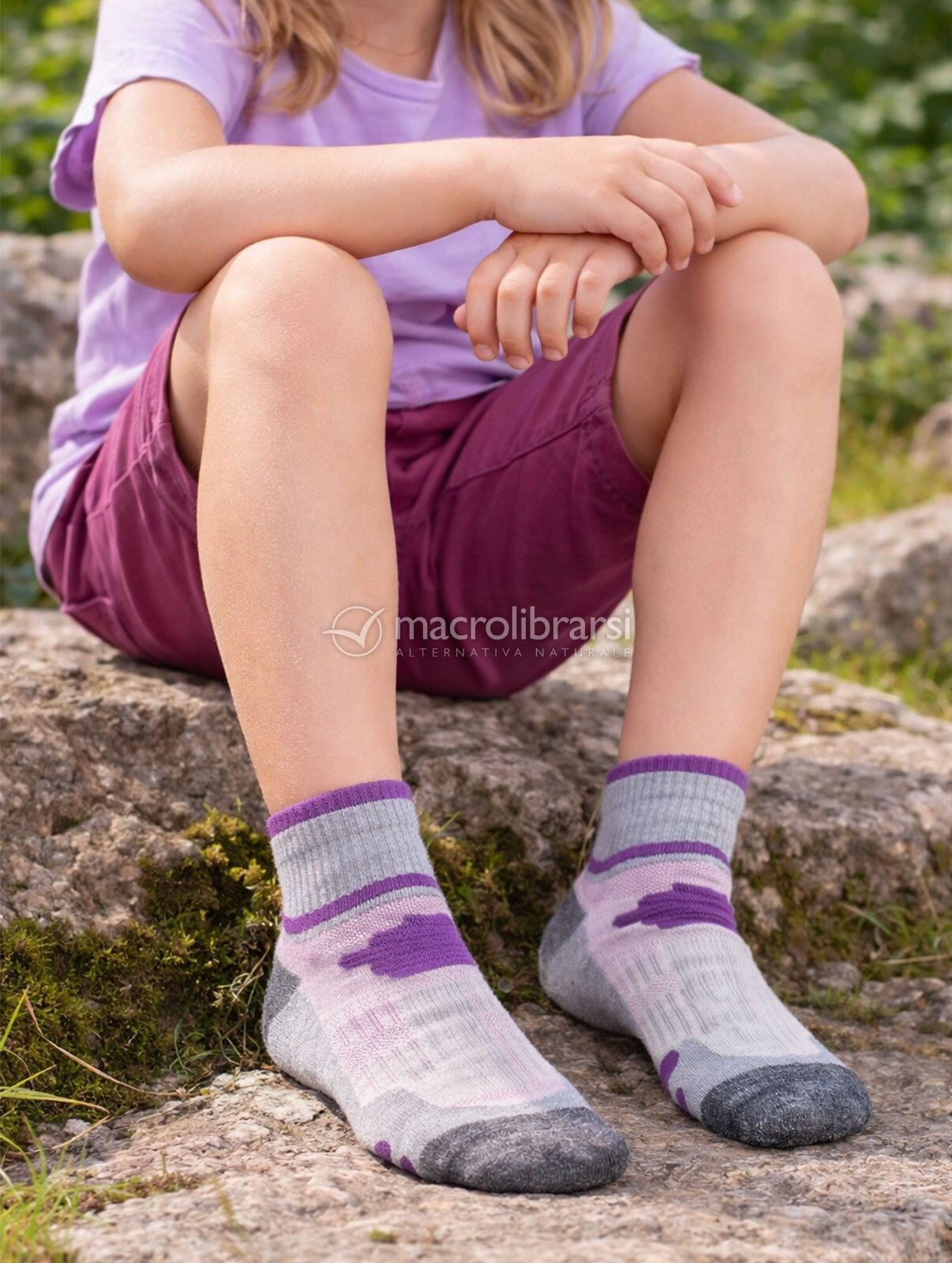 Calzini bimbi in cotone biologico e lino, traspiranti e confortevoli, con soletta rinforzata. Ideali per sport e tempo libero.