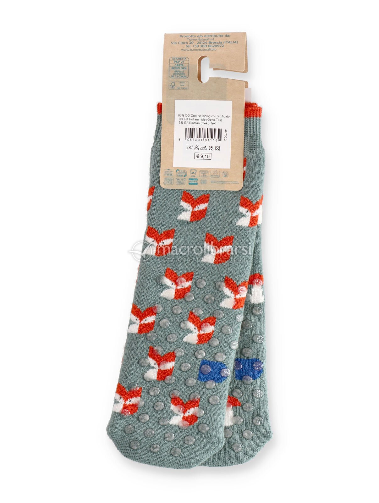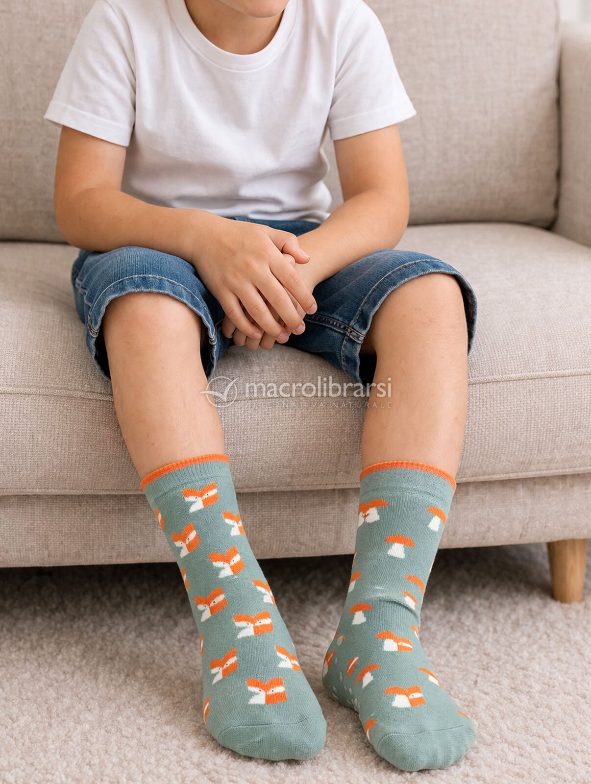 Calzini corti bimbo antiscivolo in cotone biologico certificato con spugna interna, nella fantasia spaiata Volpe e Funghetti. Morbidi, traspiranti e confortevoli, accompagnano i più piccoli nei movimenti quotidiani con più stabilità e un tocco di allegria.