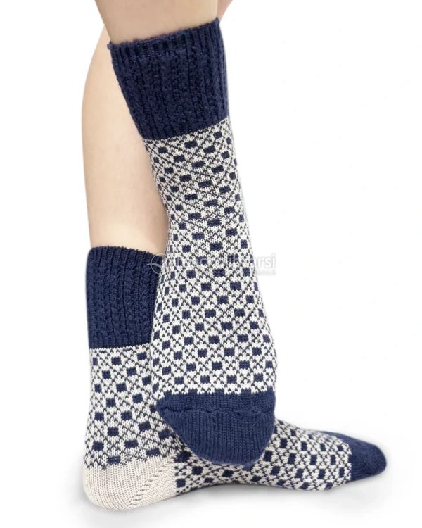 Calzini Jacquard Donna in Lana Merinos "Tessea" - Blu e Grigio