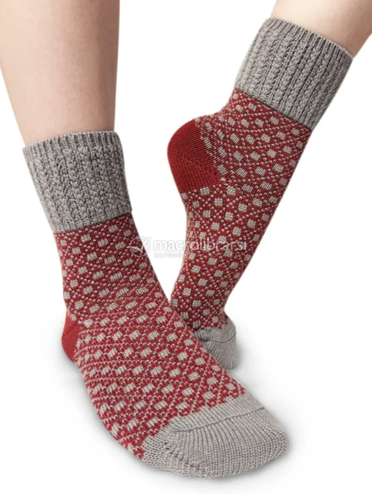 L’estetica è definita da una raffinata lavorazione jacquard, impreziosita da una costa ricamata a contrasto che richiama il fascino intramontabile della maglieria fatta a mano. Nonostante la delicatezza dei materiali, il design è pensato per durare: punta e tallone sono rinforzati con un doppio filo, offrendo una resistenza eccezionale anche nell'uso quotidiano. Il comfort è infine completato da un polso morbido e appositamente studiato per aderire con stabilità senza mai stringere, evitando fastidiosi segni sulla pelle e regalando una sensazione di libertà per tutta la giornata.