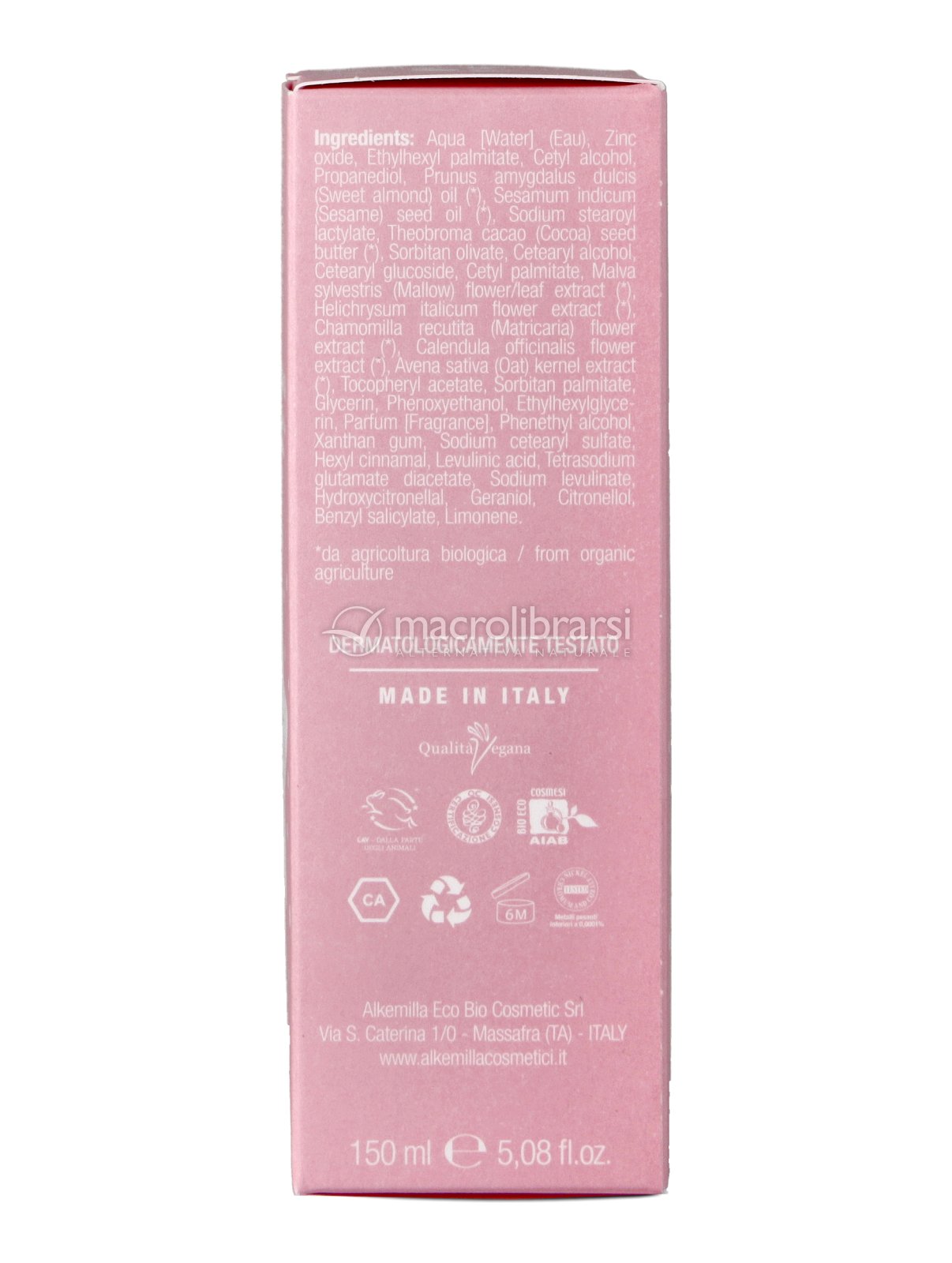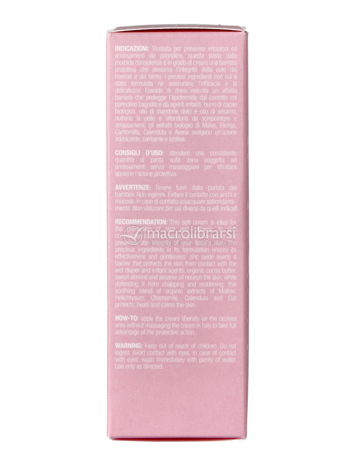 I preziosi ingredienti con cui è stata formulata ne assicurano l'efficacia e la delicatezza: l'ossido di zinco esercita un effetto barriera che protegge l'epidermide dal contatto col pannolino bagnato e da agenti irritanti; burro di cacao biologico, olio di mandorle dolci e olio di sesamo, nutrono la pelle e difendono da screpolature e arrossamenti; gli estratti biologici di Malva, Elicriso, Camomilla, Calendula e Avena svolgono un'azione addolcente, calmante e lenitiva.