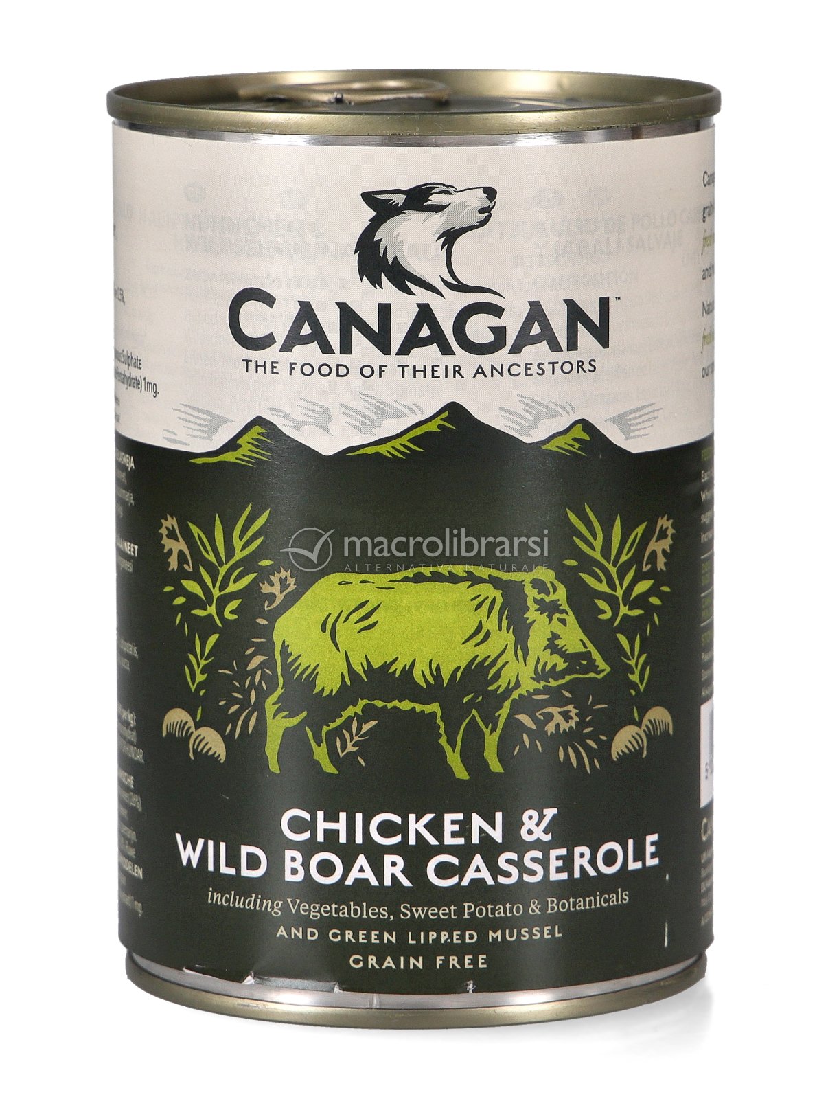 La Casseruola Pollo e Cinghiale di Canagan è un umido completo naturale, formulato per riflettere la dieta che il cane seguirebbe in natura.