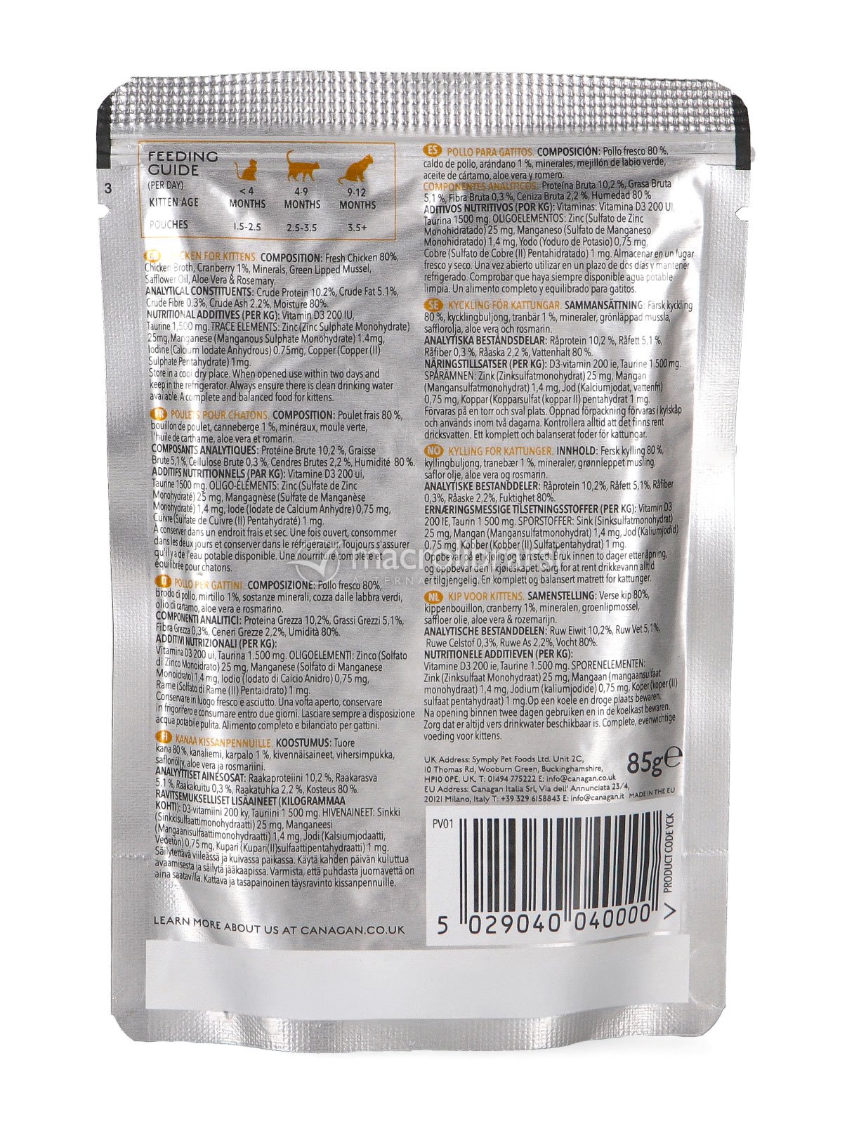 Canagan Kitten Pollo è la ricetta specifica studiata per fornire tutta l'energia e i nutrienti necessari per lo sviluppo del tuo gattino.