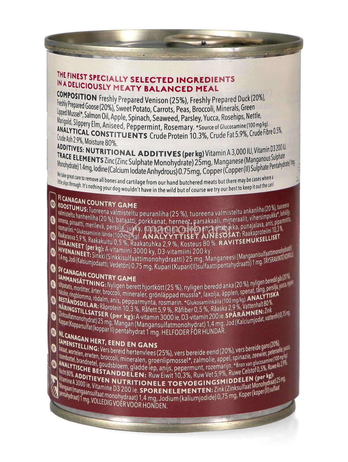 Il formato da 400 g è ideale sia come pasto completo bilanciato o aggiunto alle crocchette Canagan per creare un mix di consistenze e sapori che stimoli la masticazione e l'idratazione.