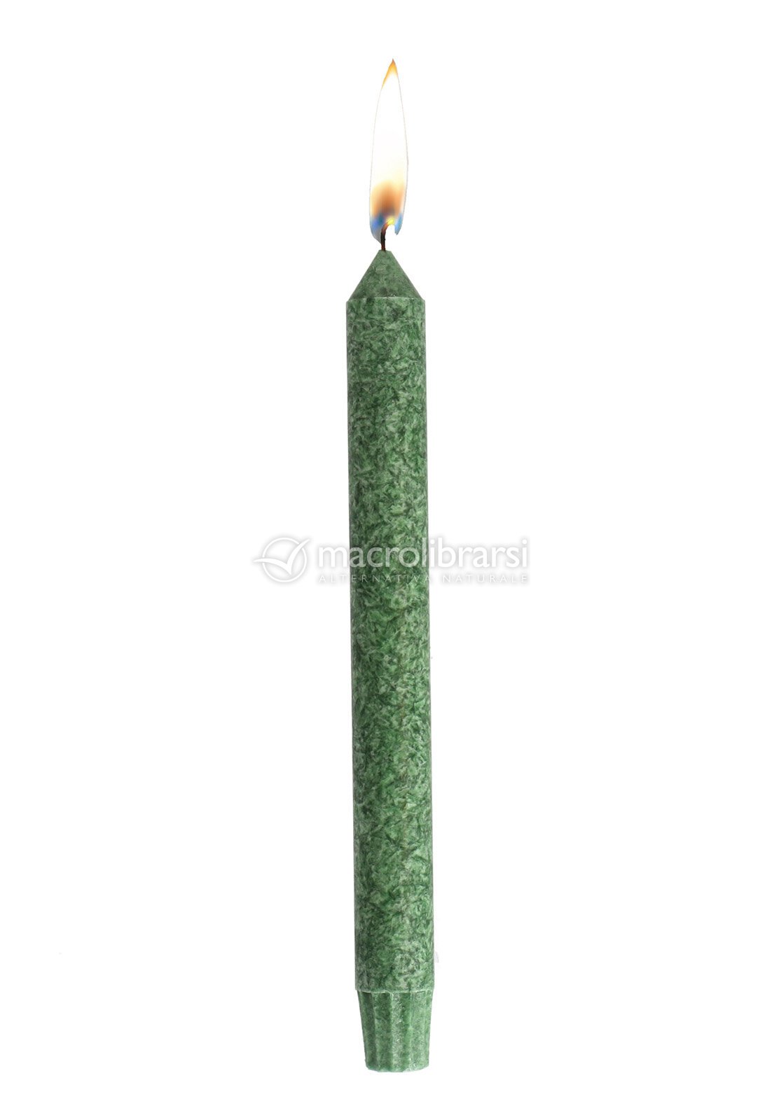 La candela da tavola profumata 4 - Chakra Verde in stearina 100% vegetale è arricchita con lavandina, arancia e mandarino.