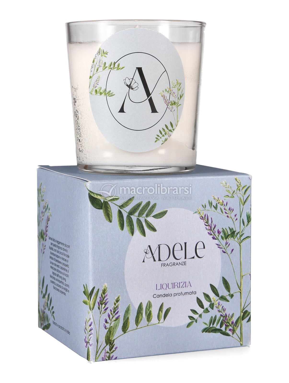 Candela profumata a base di cera di soia e una piccola quantità di paraffina ultraraffinata per garantire una corretta combustione.