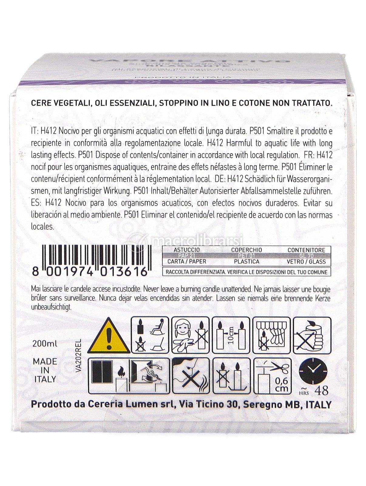 Avvertenze Può provocare una reazione allergica. Mai lasciare le candele accese incustodite. In caso di consultazione di un medico tenere a disposizione il contenitore o l'etichetta del prodotto. Tenere fuori dalla portata dei bambini