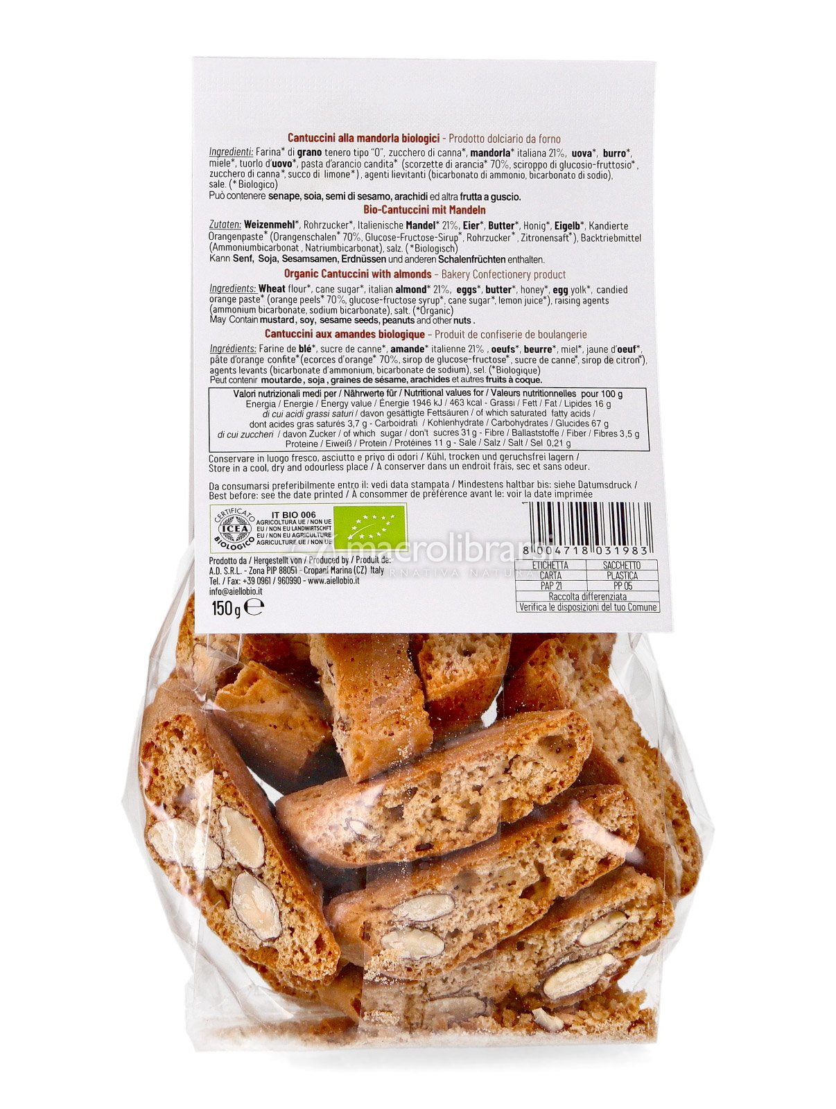 Nati dalla storia contadina italiana, i cantucci alla mandorla raccontano la semplicità di ingredienti selezionati e lavorazioni essenziali. Questa versione biologica valorizza la ricetta classica: una pasta all’uovo arricchita da mandorle intere (21%), burro e miele, cotta in filoncini e poi tagliata per ottenere la caratteristica consistenza croccante.