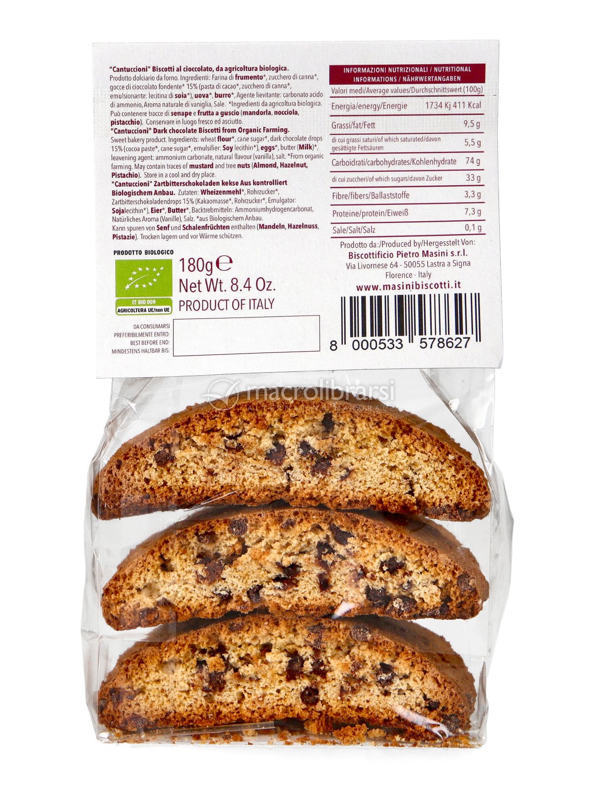 Croccanti, profumati e ricchi di gusto, i Cantuccioni con Gocce di Cioccolato della Biscotteria Artigianale Masini sono preparati secondo la migliore tradizione toscana, con ingredienti biologici e una lavorazione artigianale che ne preserva la fragranza e la semplicità.