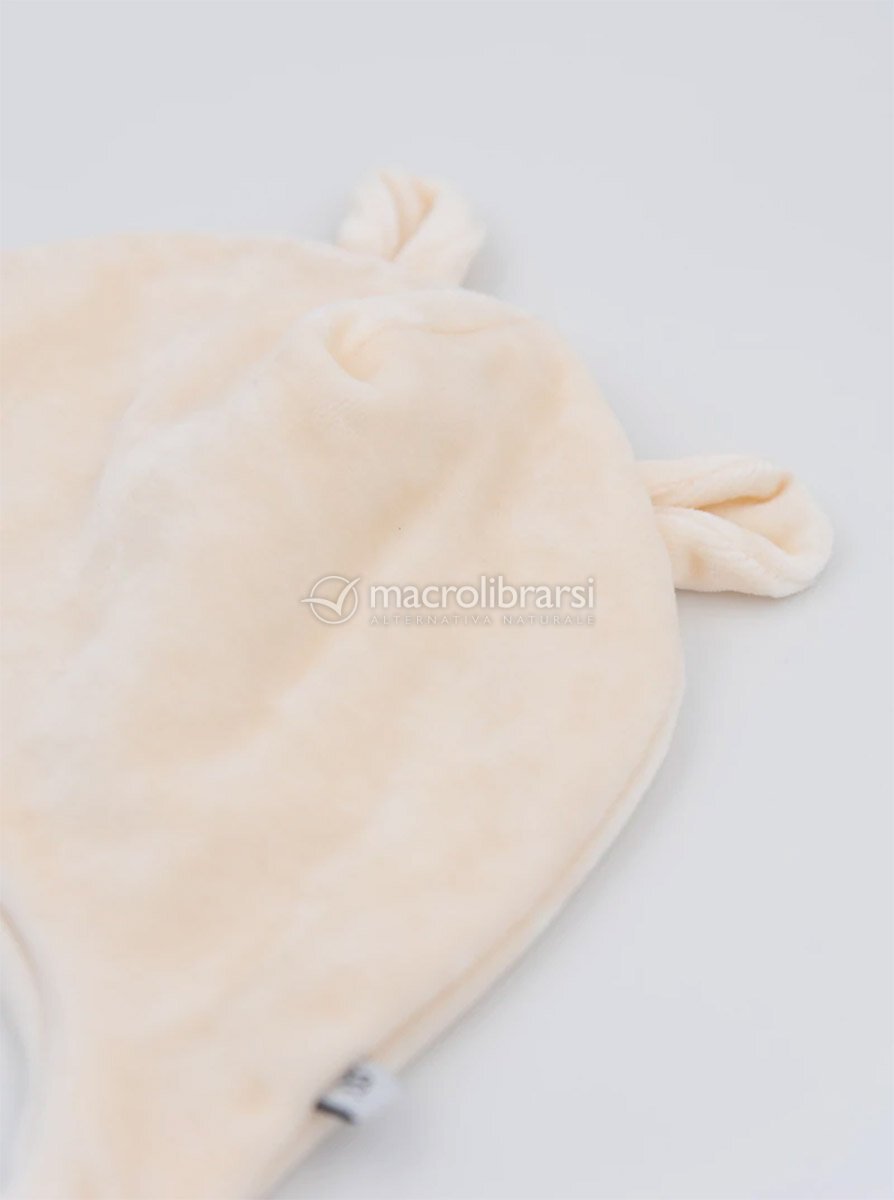 Cappellino in velluto color avorio adatto a neonati da 5 a 8 mesi.