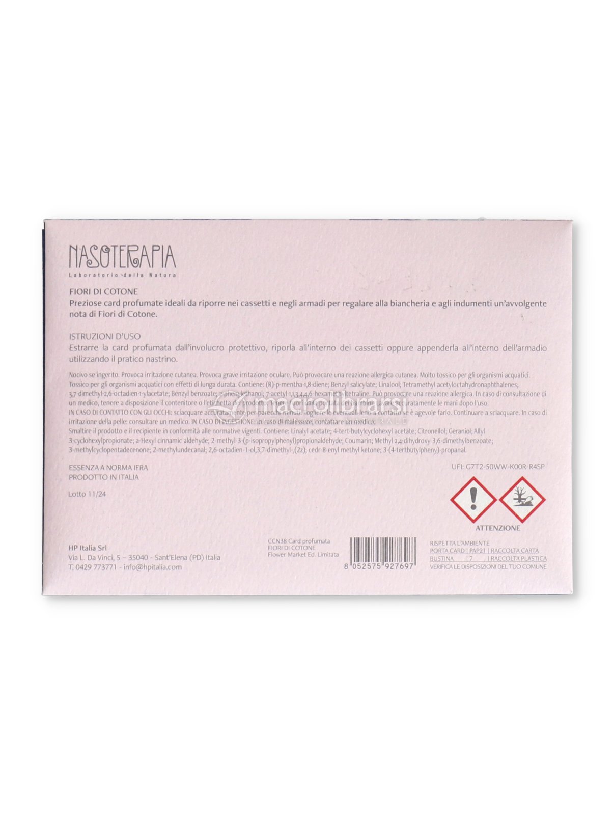 La card profumata Nasoterapia è realizzata in una speciale gomma profumata pensata per profumare piccoli spazi.