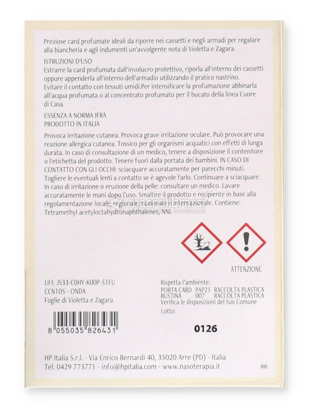 gradevole il profumo della card per cassetti e armadi alla lavanda di provenza e iris. Dentro e anche un po' fuori dell'armadio in cui ho messo la card si è diffuso un leggero profumo piacevole. Ho intenzione di provare altre fragranze.