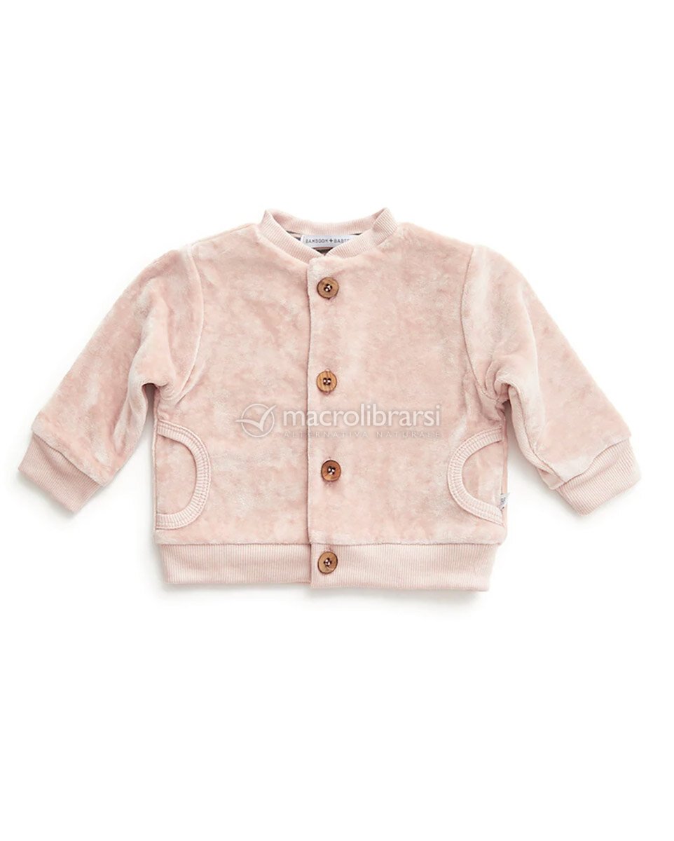 Cardigan color rosa cipria realizzato in soffice velluto di bambù organico.