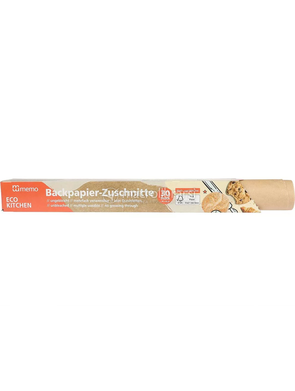 Pratici fogli di carta da forno pretagliati, ideali per cuocere pizze, torte, biscotti e molto altro senza bisogno di ungere la teglia.