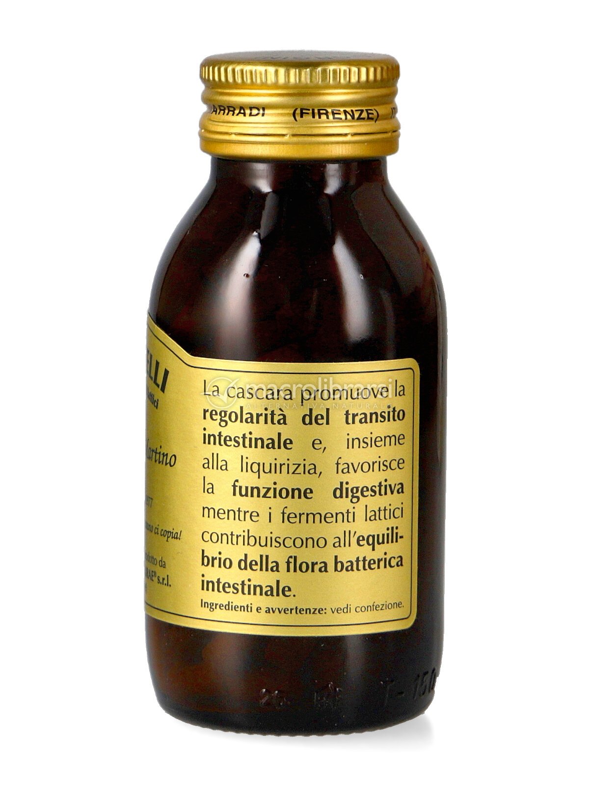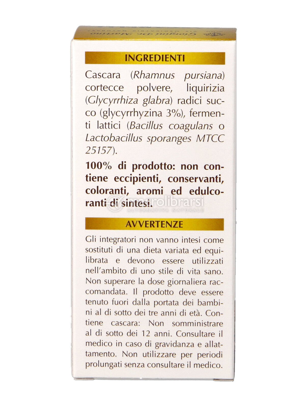 La Cascara promuove la regolarità del transito intestinale e, insieme alla Liquirizia, favorisce la funzione digestiva mentre i fermenti lattici contribuiscono all’equilibrio della flora batterica intestinale.