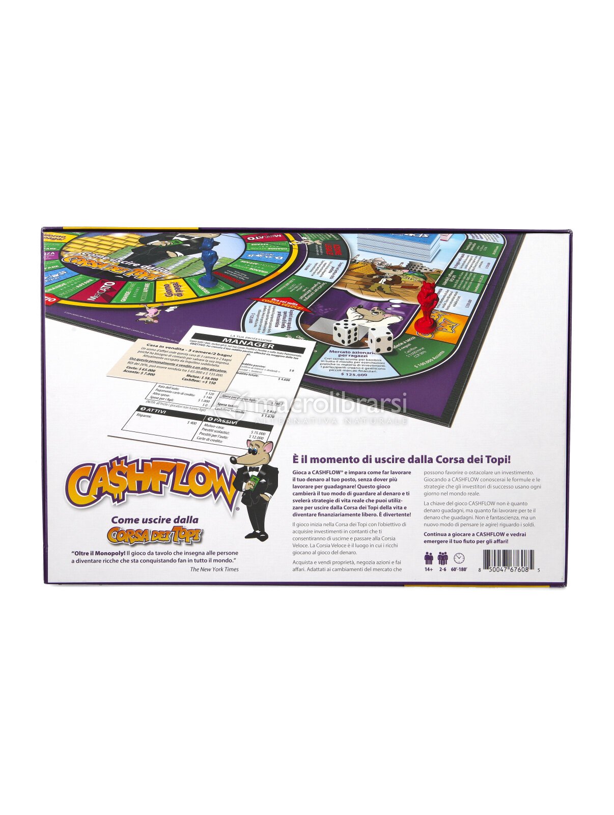 Grazie alla tua strategia di investimenti attraverso immobili, business, azioni e metalli preziosi, con il gioco Cashflow, il tuo modo di guardare al denaro cambierà e ti avventurerai in un viaggio per uscire dalla Corsa dei Topi della vita per diventare finanziariamente libero.