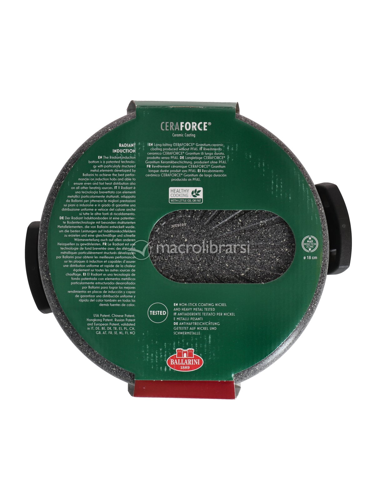 Realizzata in alluminio ad alto spessore con l'avanzato rivestimento in ceramica Ceraforce® Granitium, rappresenta la scelta definitiva per una cottura naturale: permette di cucinare senza l'aggiunta di grassi, garantendo una resistenza estrema e una sicurezza totale grazie alla completa assenza di PFAS, nickel e metalli pesanti.