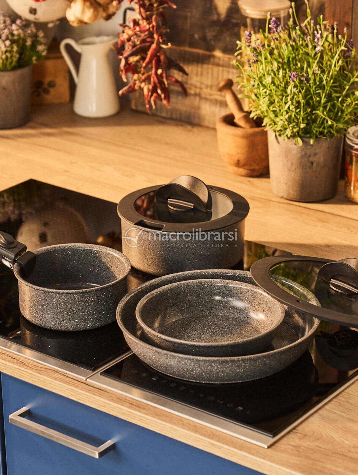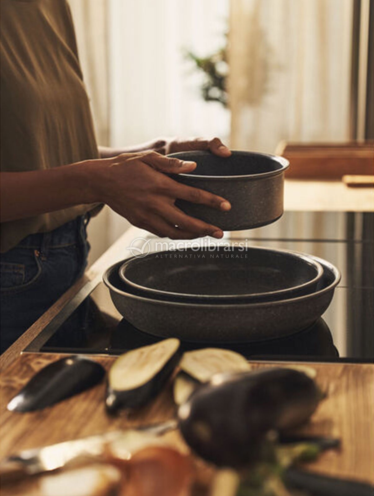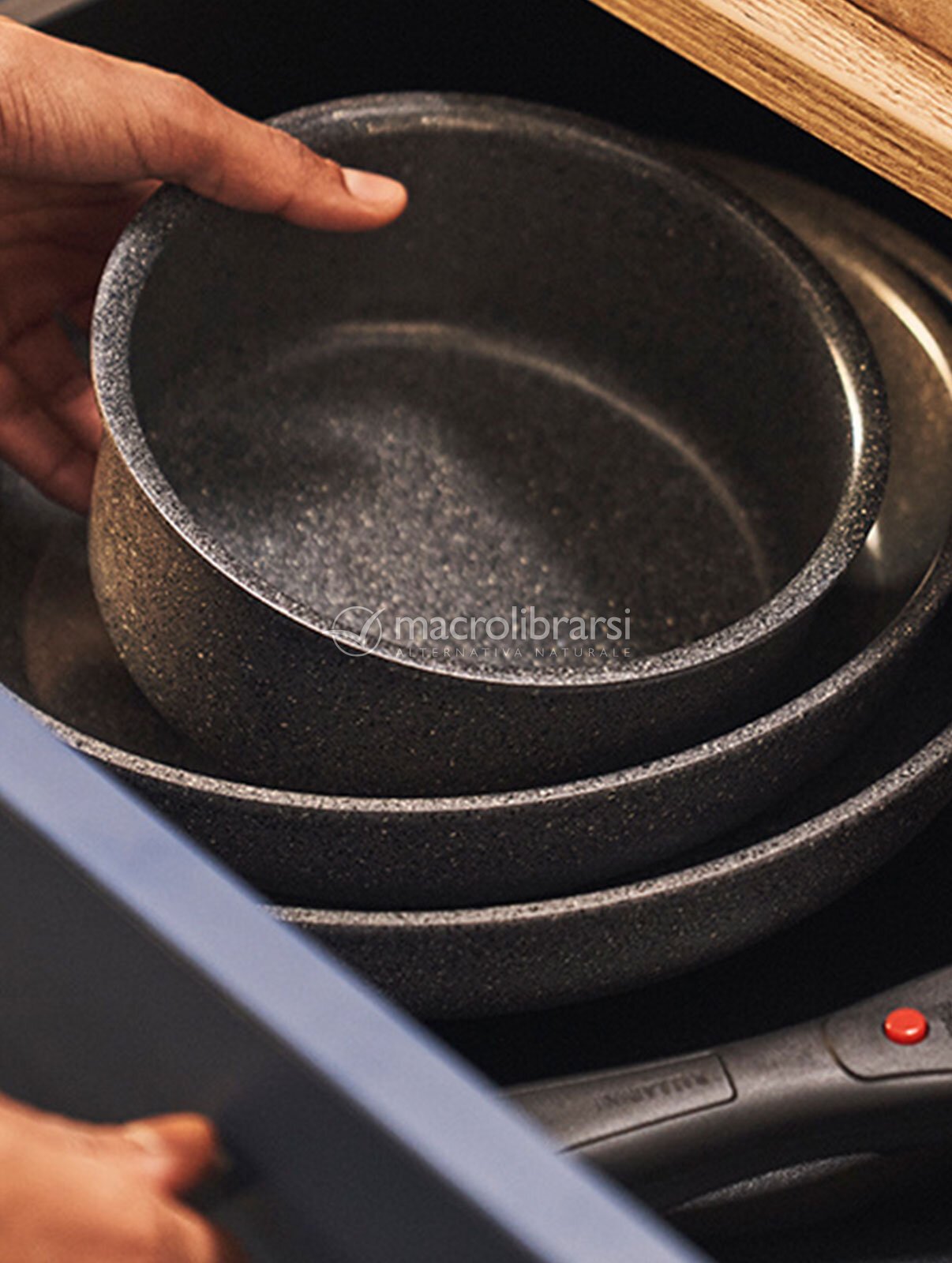 • Facilità di pulizia: grazie alla qualità dell'antiaderente ceramico, i residui scivolano via con un colpo di spugna, riducendo lo spreco d'acqua e l'uso di detergenti aggressivi.