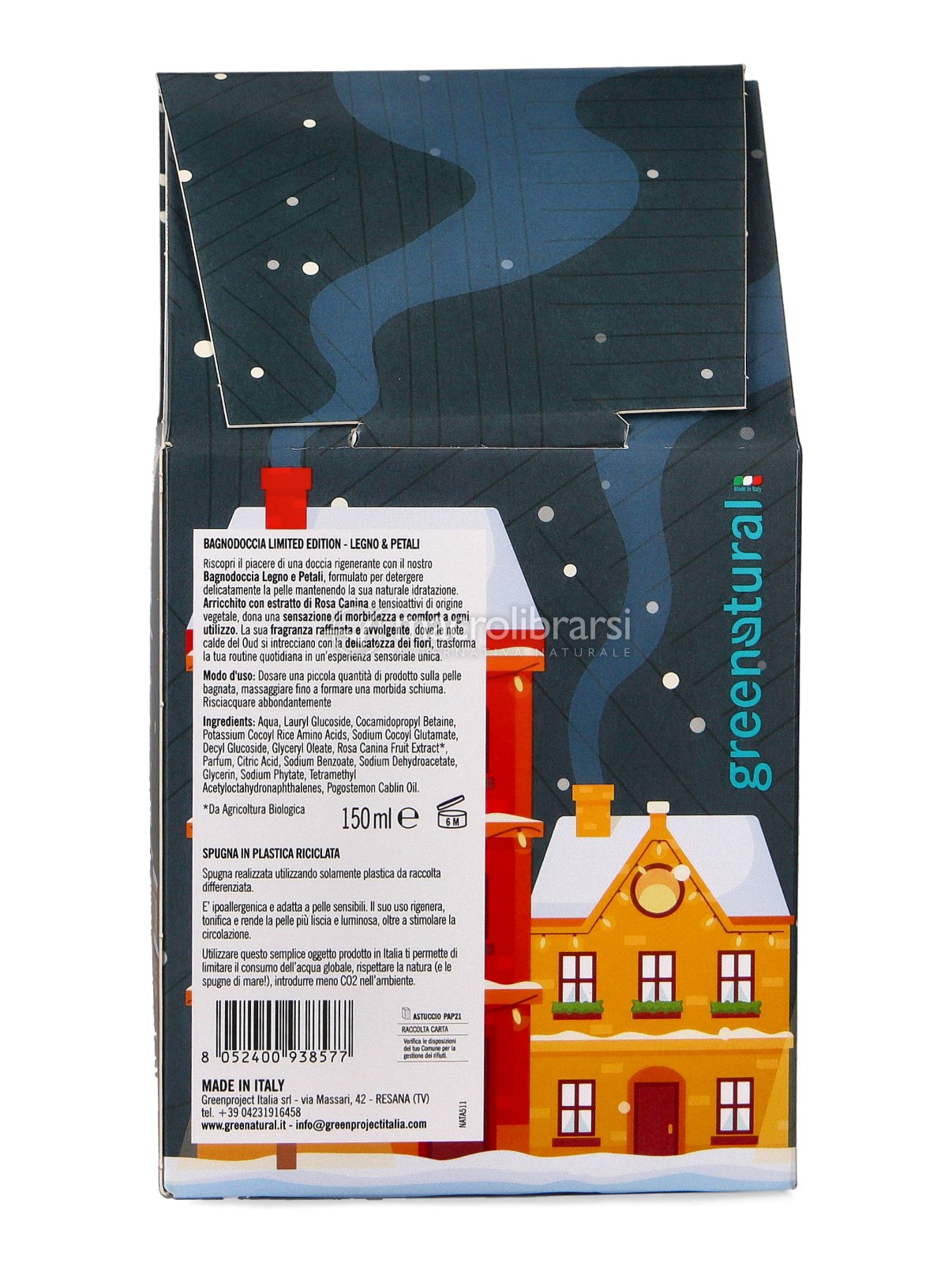 | Confezione | Bagnodoccia Legno e Petali (150 ml) + Spugna in Plastica Riciclata |